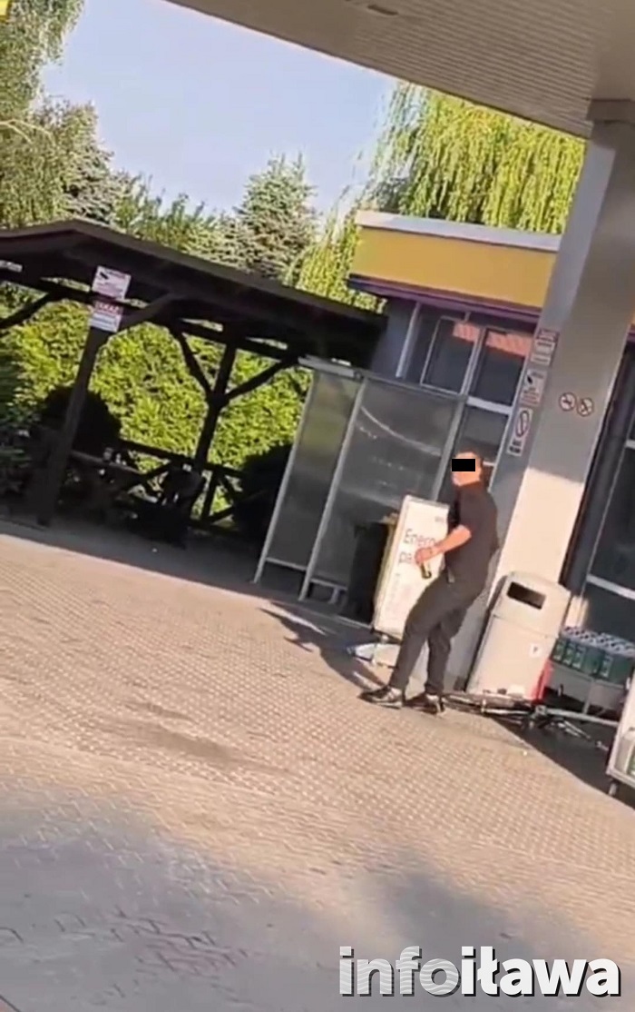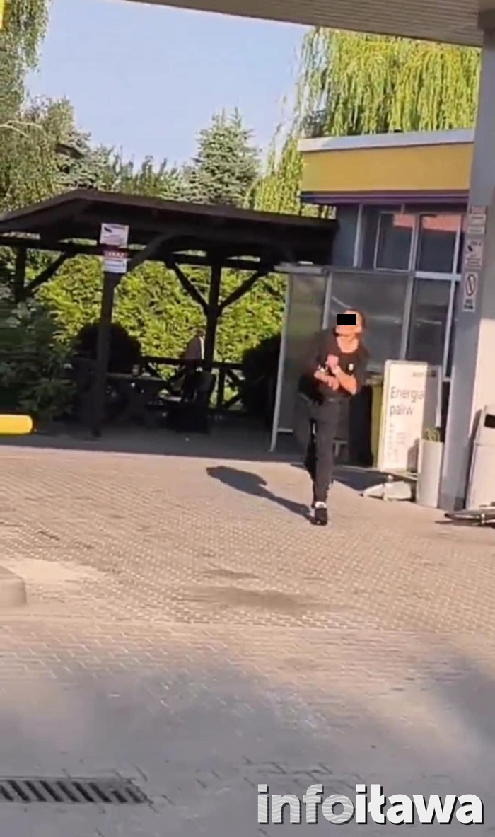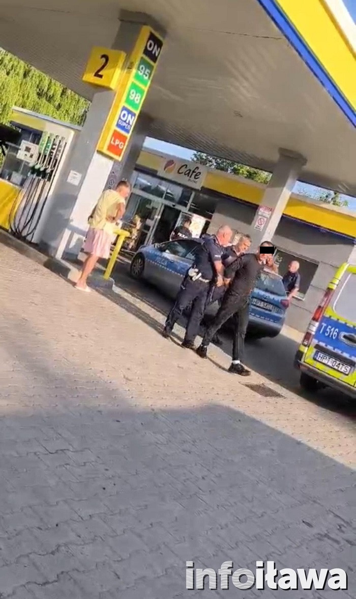 Zauważyliśmy kasjera, który wybiegł ze stacji i krzyczał do tankującego mężczyzny: Ma Pan telefon? Kiedy zapytaliśmy go, co się stało, powiedział: Dzwońcie po policję, bo całą stację rozwali! Oczywiście wezwaliśmy patrol.