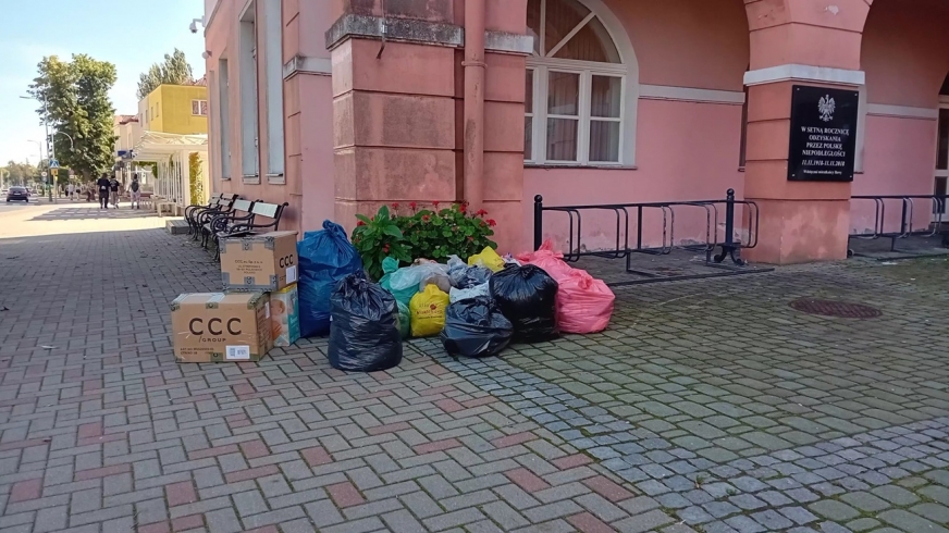 Owszem, pod ratuszem przy ulicy Niepodległości w Iławie zaplanowano sobotnią akcję "Mobilny PSZOK", umożliwiającą mieszkańcom legalne pozbycie się niepotrzebnych tekstyliów, ale mowa jest dopiero o sobocie 18 października. Tymczasem już dzisiaj - 20 września, pod siedzibą iławskiego magistratu pozostawiono odpady.