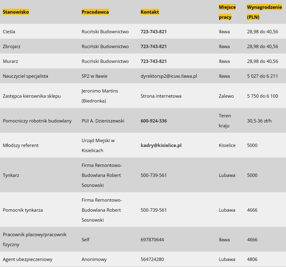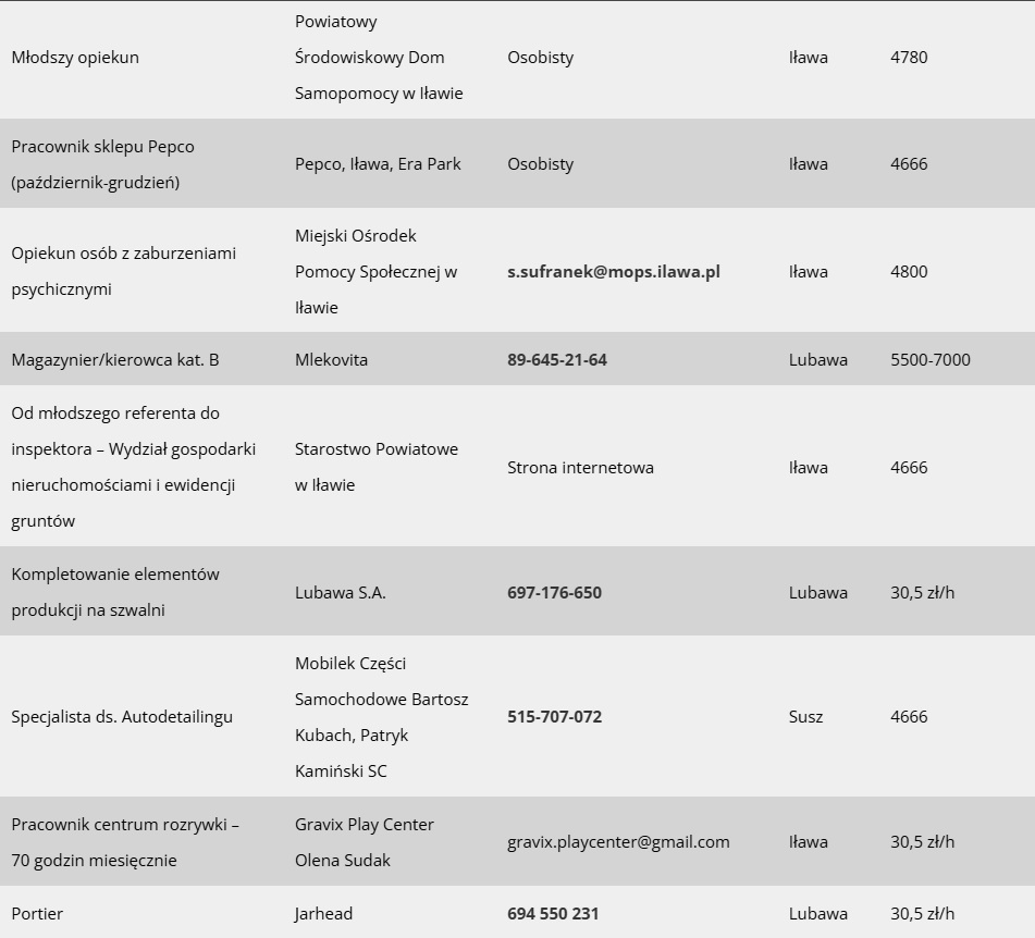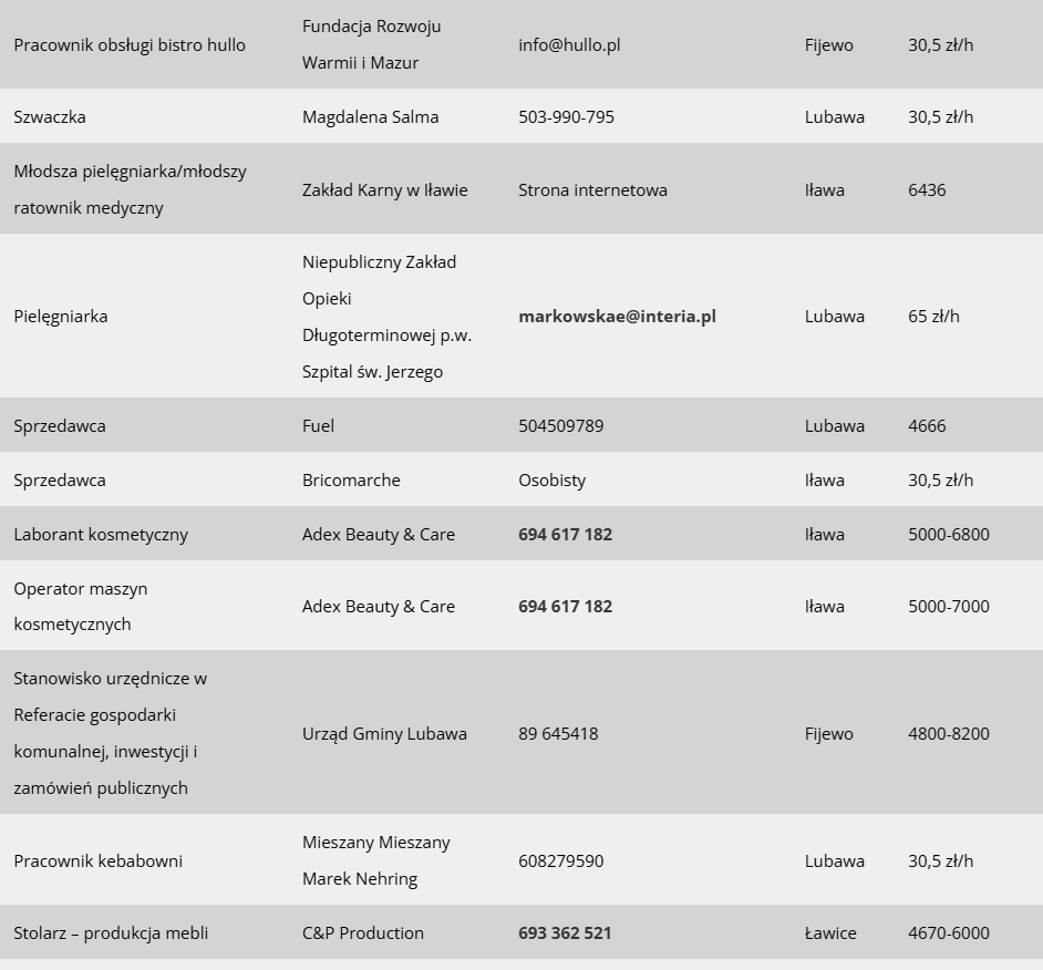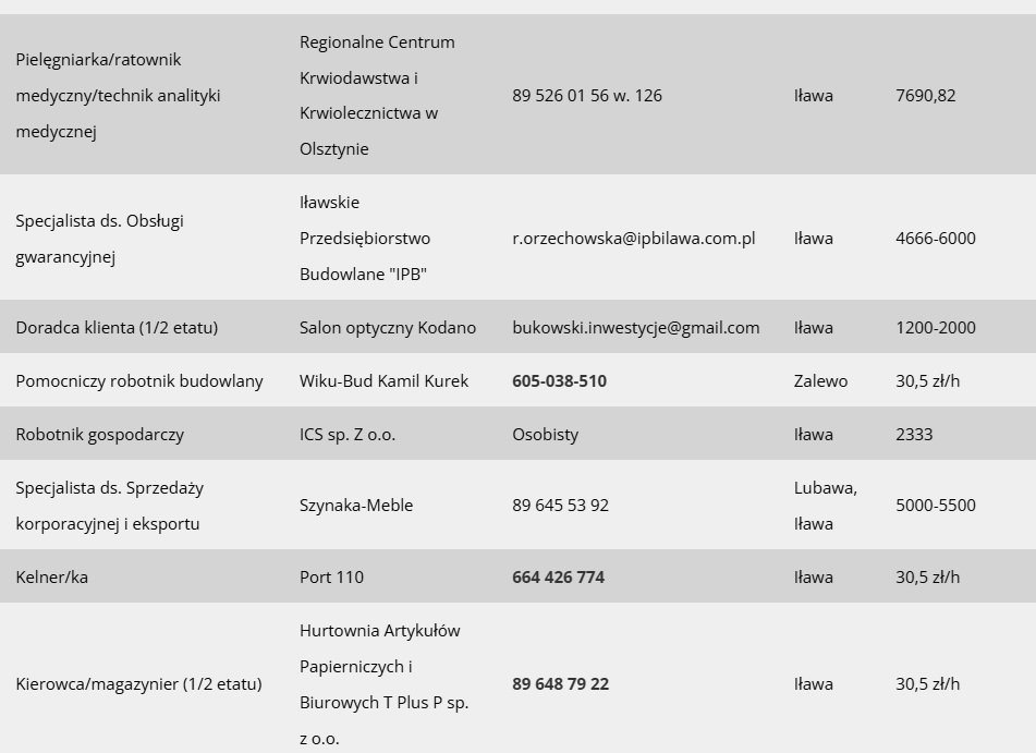 Dziś prezentujemy Wam ponad 40 nowych ofert pracy, jakie w ciągu minionego tygodnia pojawiły się w bazie Powiatowego Urzędu Pracy w Iławie. Zapraszamy wszystkich poszukujących zatrudnienia w Iławie i powiecie iławskim do zapoznania się ze szczegółami.