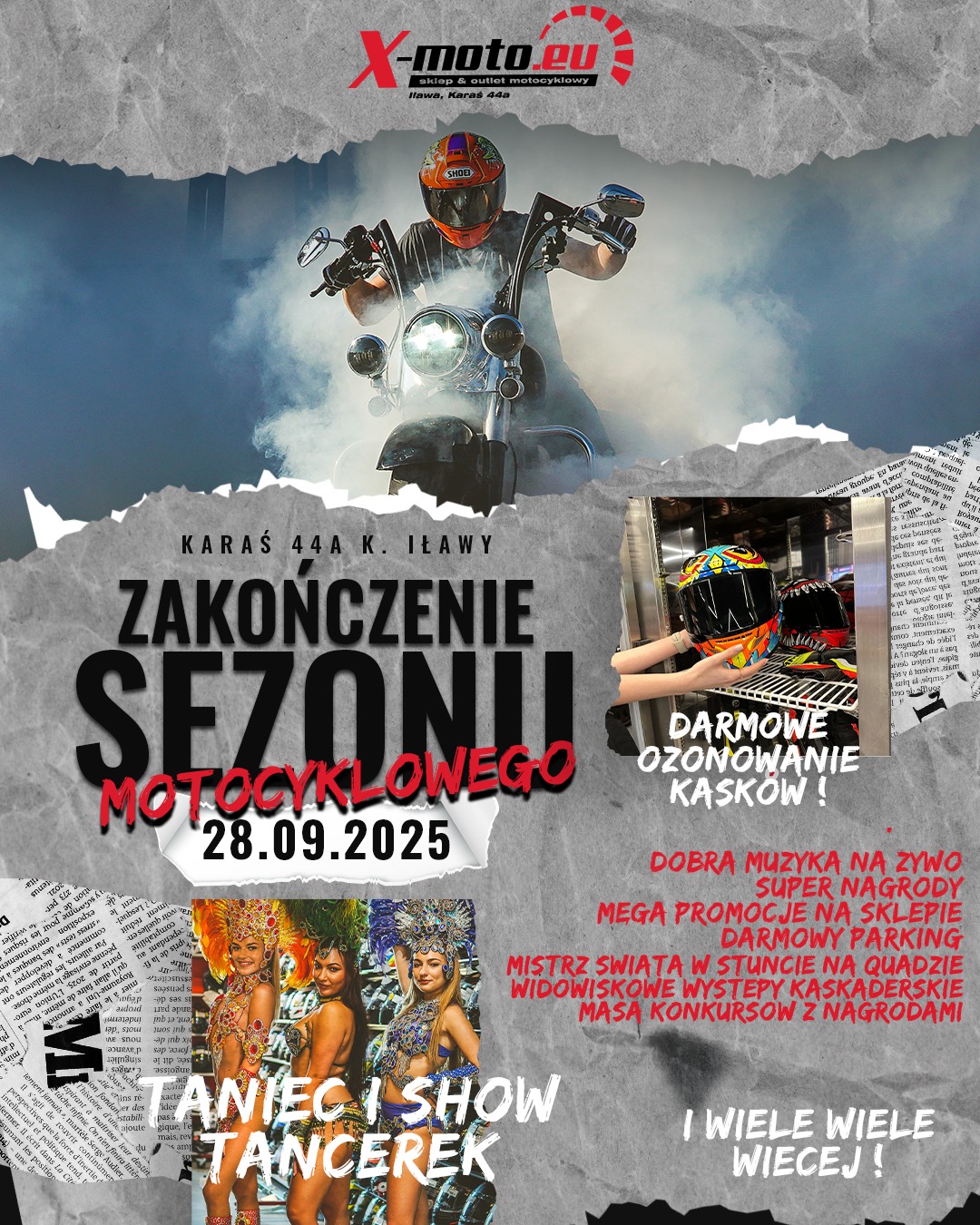 „Motocykliści, pasjonaci, ekipa X-moto - to będzie NASZ dzień!” - zapowiadają organizatorzy zbliżającego się wielkimi krokami Zakończenia Sezonu Motocyklowego 2025 w Karasiu pod Iławą. Zapraszamy już w tę niedzielę, 28 września, od godziny 11:00. Portal Info Iława objął wydarzenie patronatem medialnym.