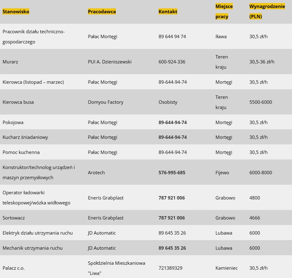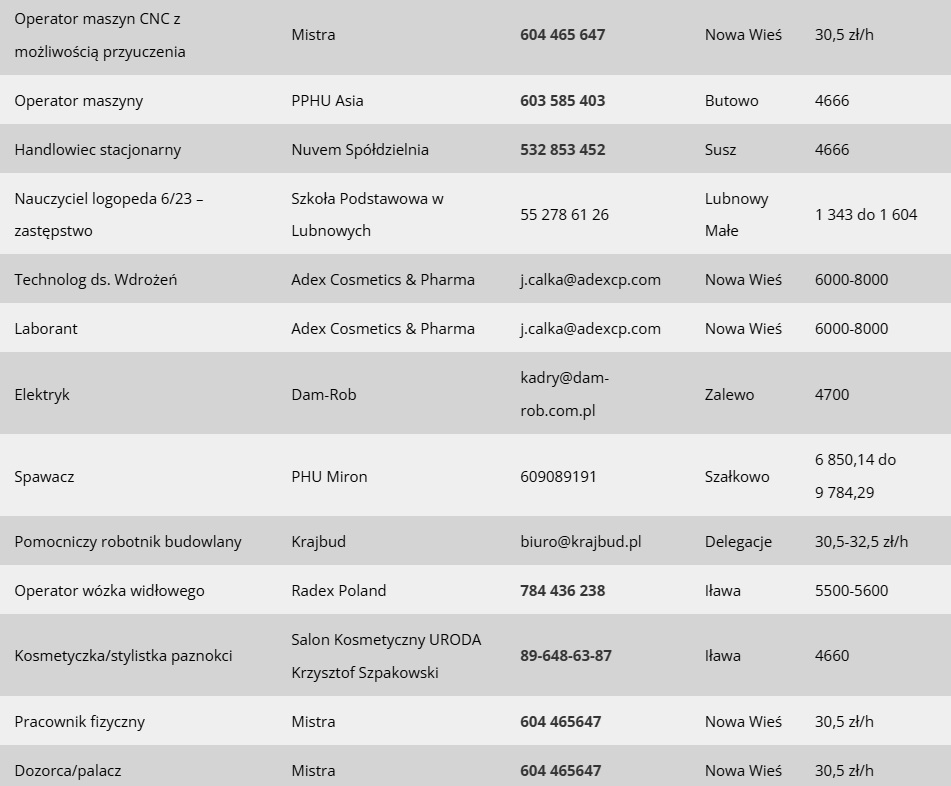 Dziś prezentujemy Wam około 30 nowych ofert pracy, jakie w ciągu minionego tygodnia pojawiły się w bazie Powiatowego Urzędu Pracy w Iławie. Zapraszamy wszystkich poszukujących zatrudnienia w Iławie i powiecie iławskim do zapoznania się ze szczegółami.