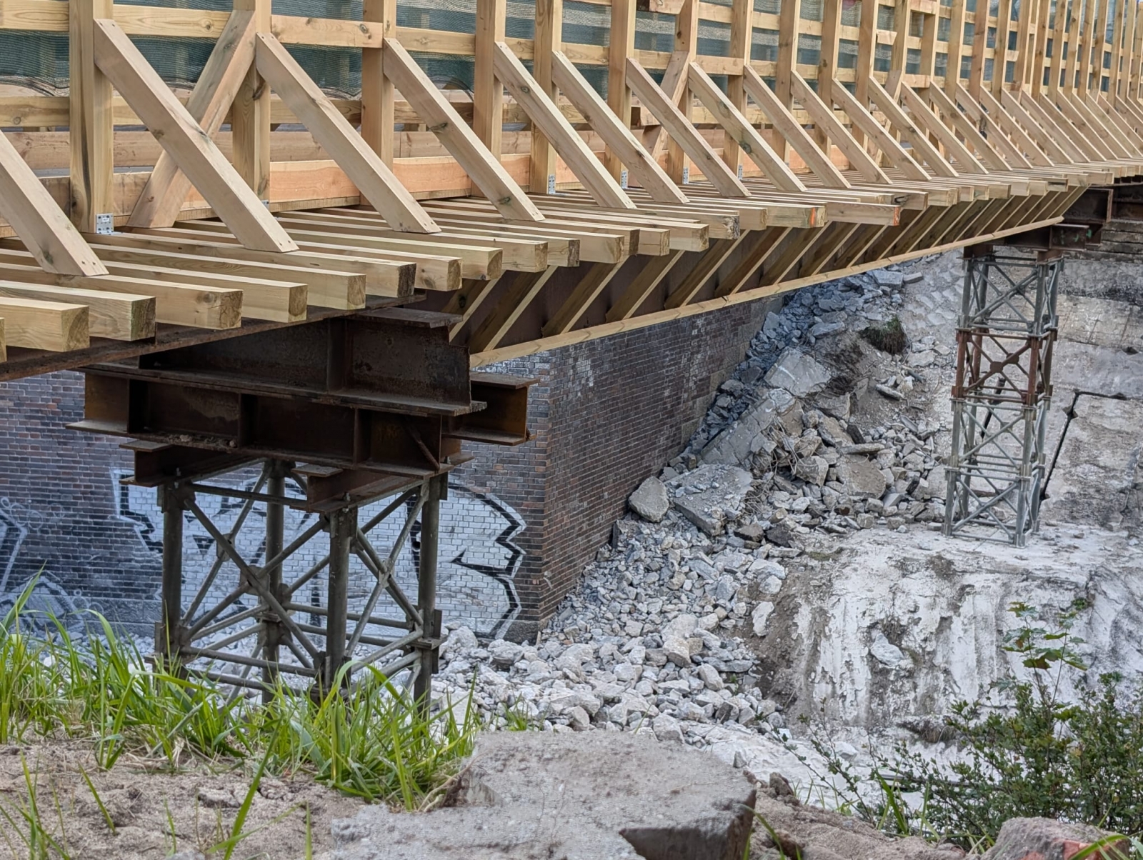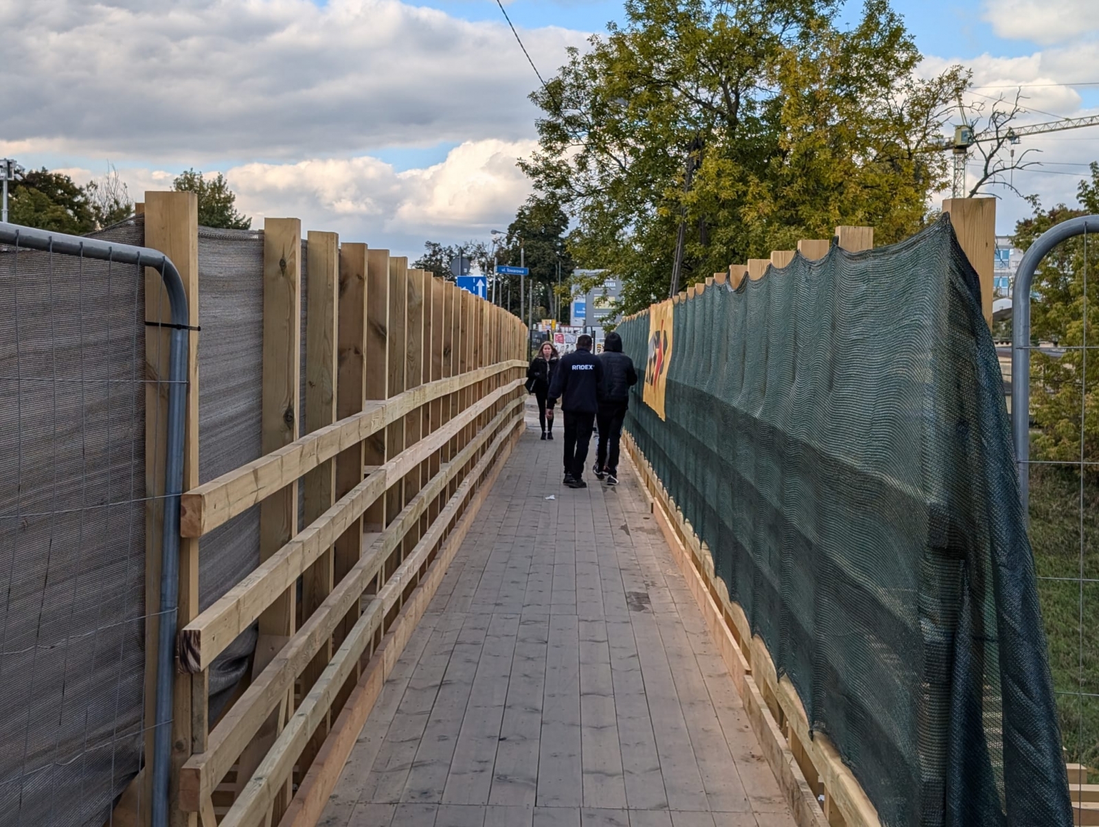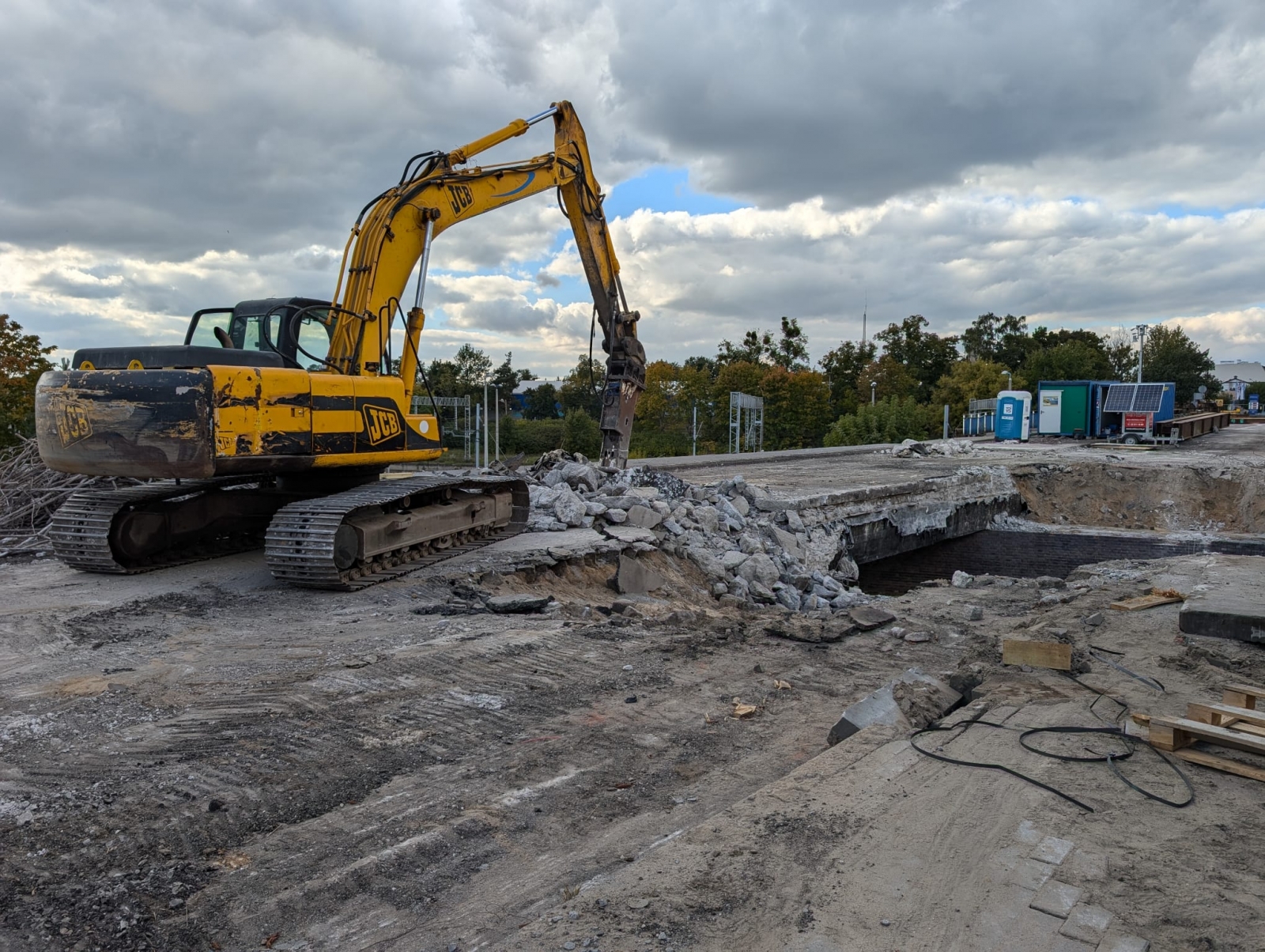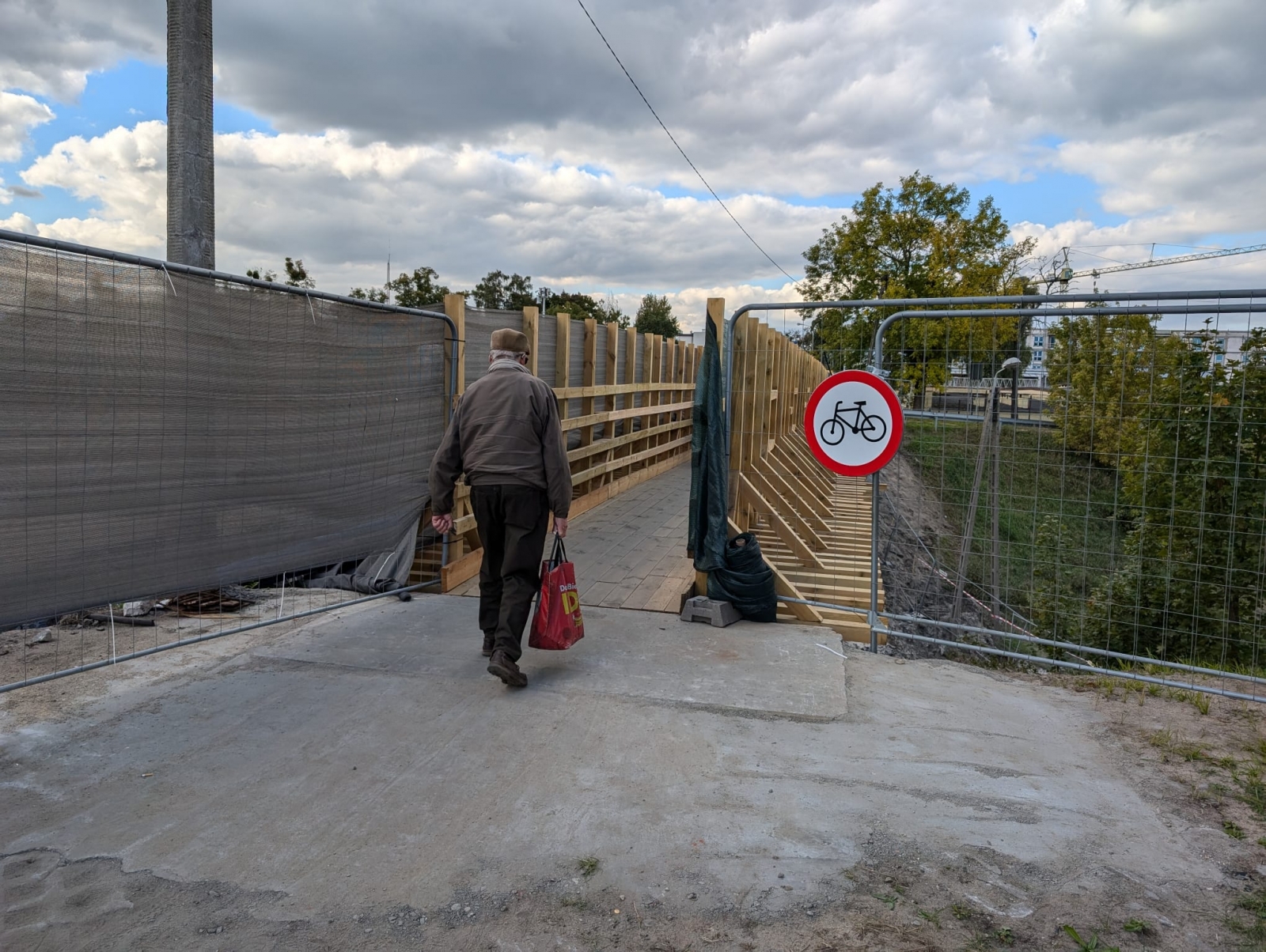 Na miejscu widzieliśmy, że ruch pieszych odbywa się już po pierwszej z kładek, a mniejszy z wiaduktów właśnie przechodzi do historii. Prace rozbiórkowe są zaawansowane, co możecie zobaczyć na naszych wczorajszych zdjęciach.