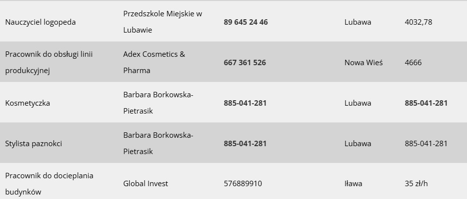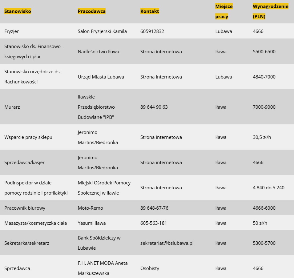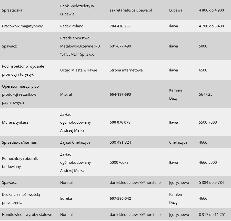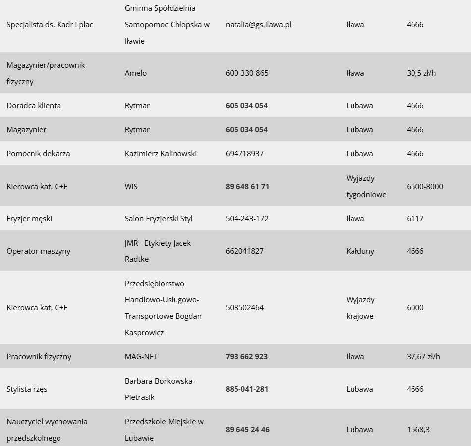 Jak co poniedziałek mamy dla Was przegląd najnowszych ofert pracy dostępnych w Iławie i w powiecie. Tym razem jest ich 40. Oferty pochodzą z bazy Powiatowego Urzędu Pracy w Iławie, z ostatnich 7 dni.