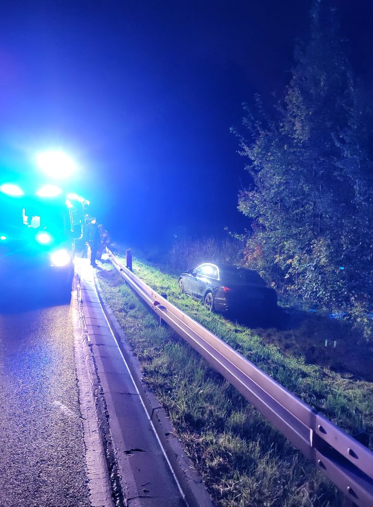 Na biegnącym przez las odcinku trasy kierujący osobowym audi stracił panowanie nad pojazdem, po czym wypadł z jezdni i zjechał do przydrożnego rowu.