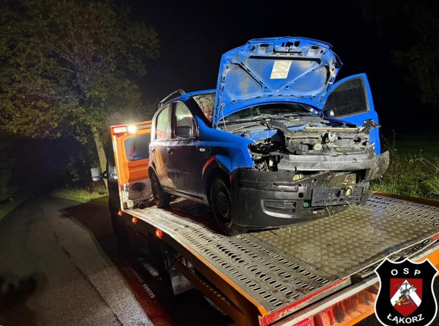 Tym razem pecha miał kierowca w miejscowości Łąkorek w gminie Biskupiec, a wszystko działo się około godziny 21:40.