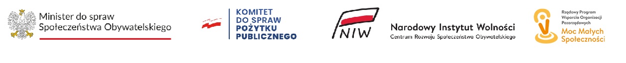 Sfinansowano ze środków programu mikrodotacji STRATEGIA NA TRUDNE CZASY – MOC MAŁYCH SPOŁECZNOŚCI w ramach Rządowego Programu Wsparcia Organizacji Pozarządowych – Moc Małych Społeczności, priorytet 3.