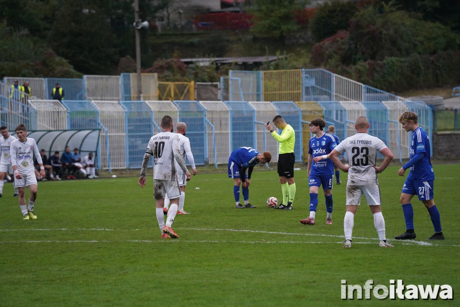 Mimo to do przerwy utrzymał się bezbramkowy remis. Co prawda Jeziorak był bardzo aktywny i stwarzał pod bramką rywala spore zagrożenie – ale bramkarz Tyrowa świetnie się dziś wywiązywał ze swoich obowiązków. Dopiero w 51. minucie Michał Jankowski skutecznie wyegzekwował rzut karny – i iławski stadion cieszył się z prowadzenia swojej drużyny. Niestety, ta radość nie trwała długo, bo już w 54. minucie bramkę wyrównującą zdobył Błażej Chyrzyński.