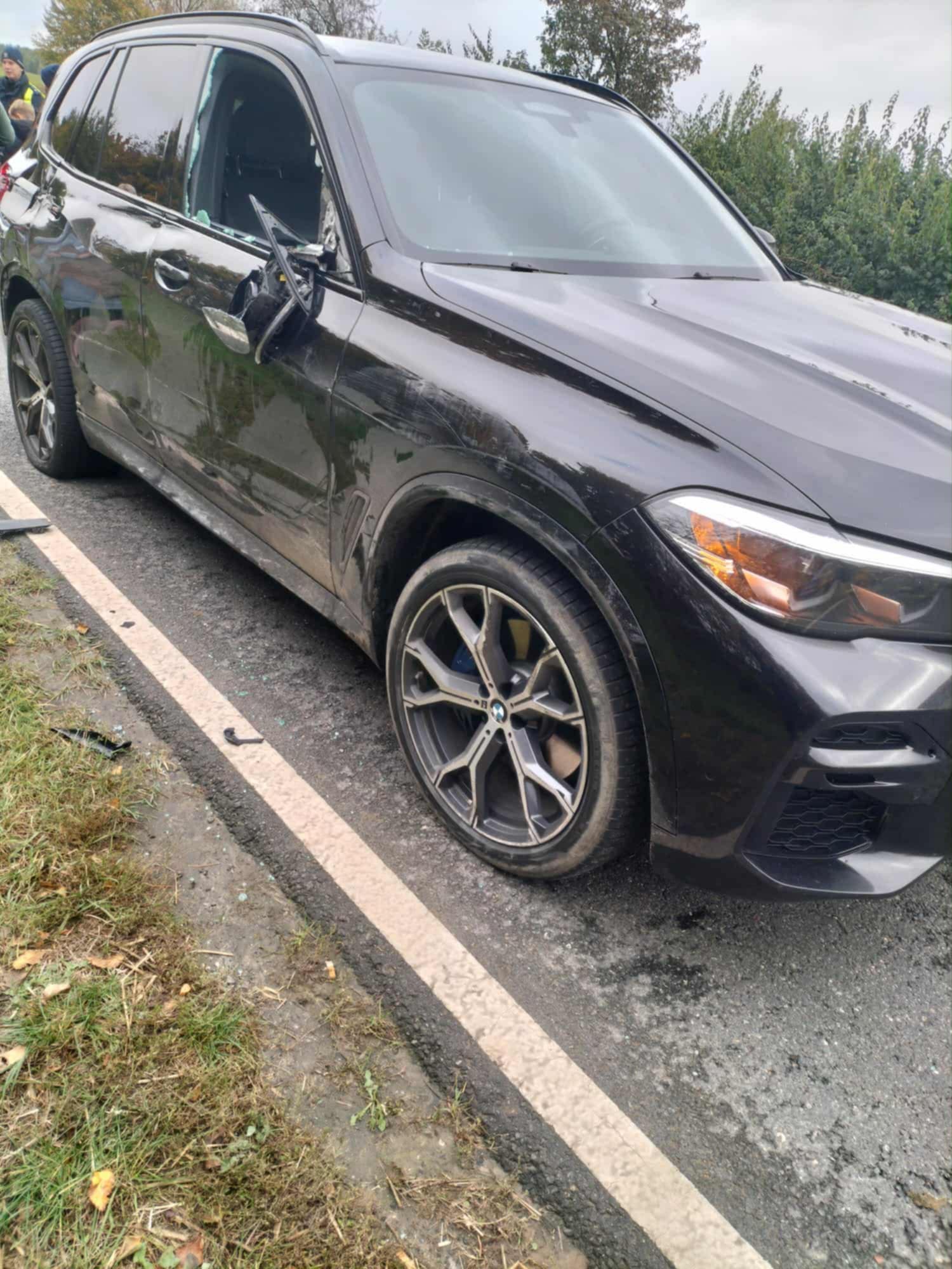 Kierujący mercedesem podjął manewr wyprzedzania samochodu ciężarowego, a sam był już wyprzedzany przez BMW – w ten sposób doprowadził do bocznego zderzenia między pojazdami.