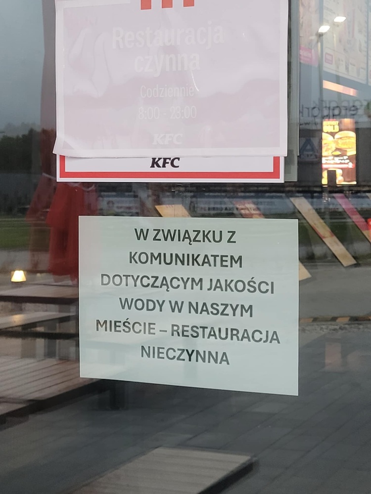 Trzeba przyznać, że sieciowe restauracje typu fast food działające w Iławie bardzo poważnie podeszły do kwestii problemów z jakością wody z publicznego, miejskiego wodociągu, jakie obecnie mają miejsce w naszym mieście. Podczas gdy wiele innych lokali działa bez żadnych zmian, wcześniej McDonald's, a teraz także KFC całkowicie wstrzymały pracę.