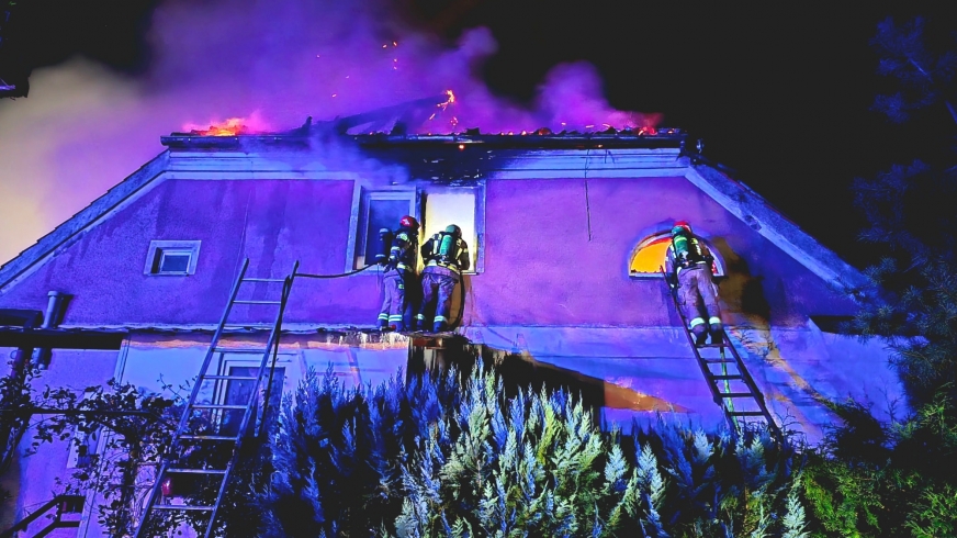 Ogień pojawił się w budynku mieszkalnym, w którym mieszkały cztery rodziny. Jak informuje straż pożarna, z płonącego domu ewakuowało się 10 osób. Niestety, na piętrze pozostali jeszcze dziecko i mężczyzna.