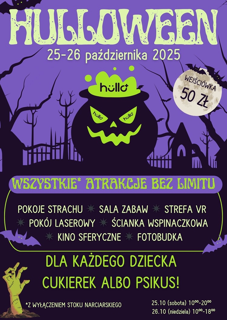 To będzie największa i najbardziej wyczekiwana impreza roku w centrum rozrywki Hullo. W ostatni weekend miesiąca, 25 i 26 października 2025 roku, to miejsce zamieni się w mroczną, ale pełną śmiechu i pozytywnej energii krainę. To właśnie wtedy odbędzie się coroczny Hulloween – wydarzenie, na które czekają mali i duzi fani dobrej zabawy.