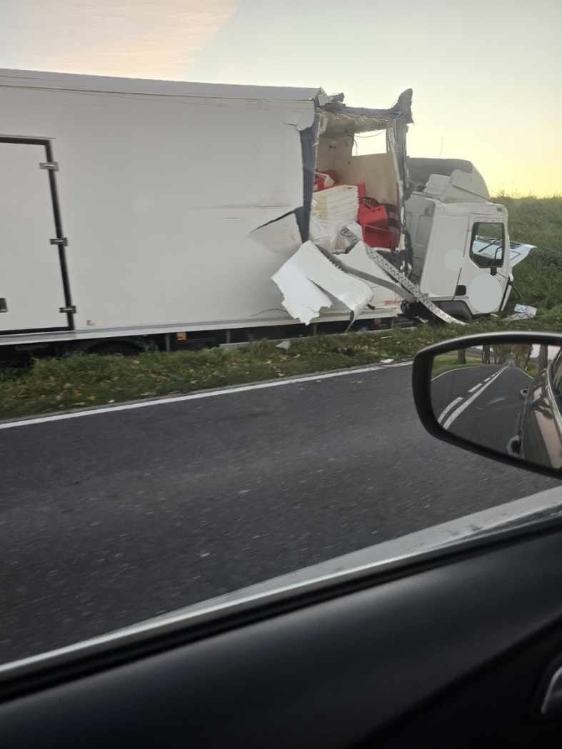Zarządca drogi zapłaci za to zdarzenie! Róg naczepy sam się nie rozerwał tylko gałęzie w śladzie drogi spowodowały rozerwanie naczepy i wybicie pojazdu z toru jazdy.