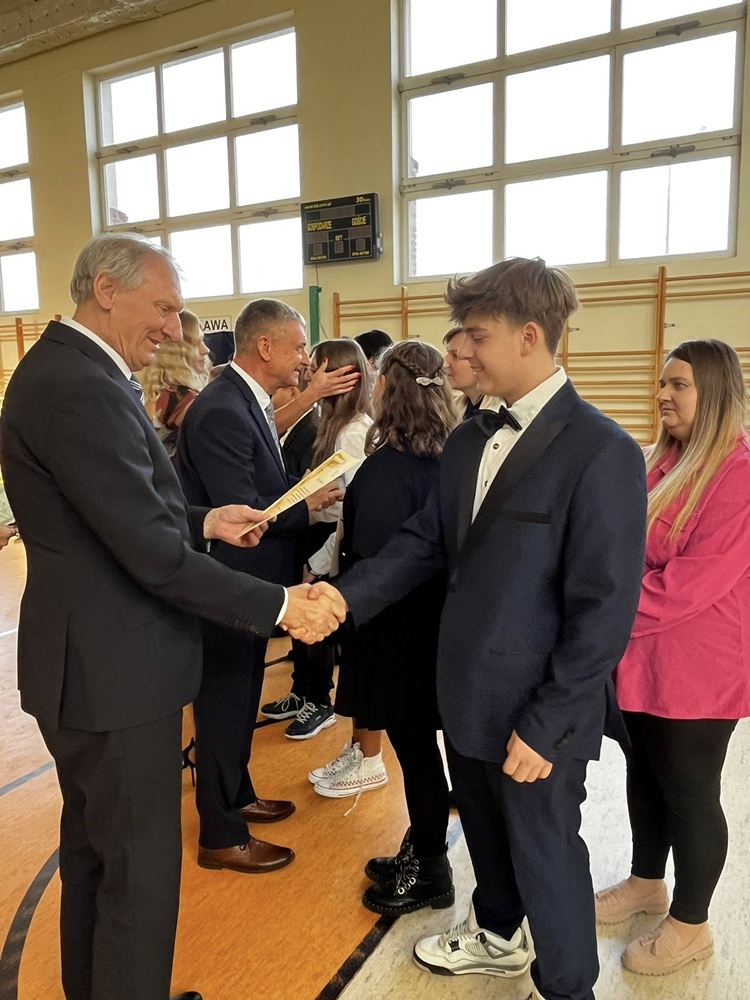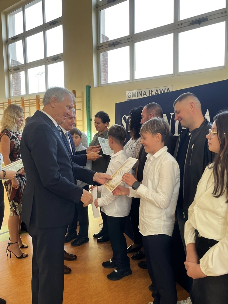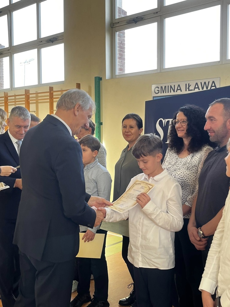 Najlepsi uczniowie odebrali świadczenia przyznane przez samorząd za wybitne osiągnięcia w nauce. Jak podkreślano podczas uroczystości, w których uczestniczyli także rodzice i nauczyciele, „sukces jest wynikiem właściwej decyzji”. A tych sukcesów gratulowali Wójt Gminy Iława Krzysztof Harmaciński wraz z zastępcą Andrzejem Brachem oraz Przewodniczącym Rady Gminy Iława Krzysztofem Zielińskim.