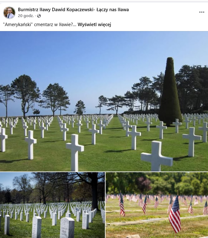Post burmistrza z wizualizacją "amerykańskiego" cmentarza.