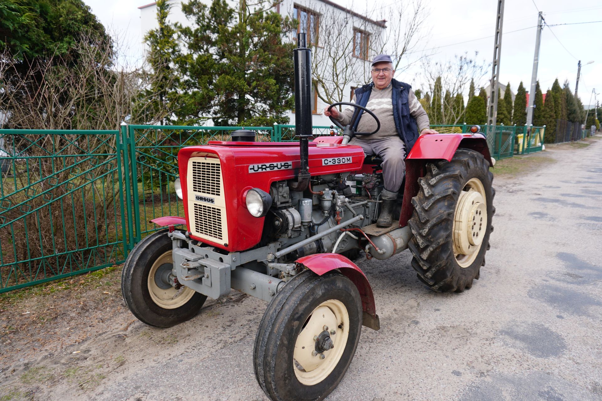 Piotr Jaskulski na swoim Ursusie. Teściowie pana Piotra mieszkali na Osiedlu Lubawskim już w 1955 roku, a on sam jest tu od 1973 r. (fot. Mateusz Partyga)