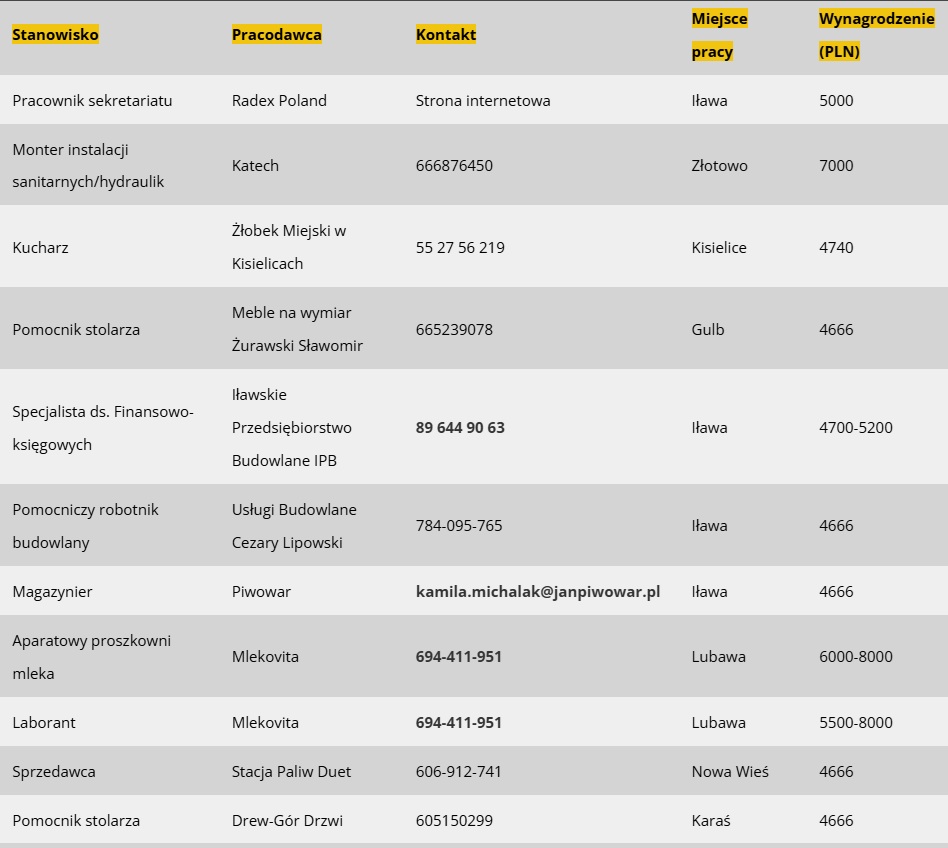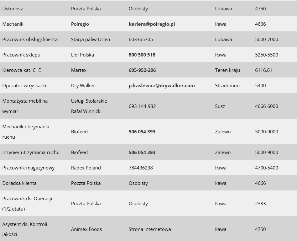 Jak co poniedziałek mamy dla Was przegląd najnowszych ofert pracy dostępnych w Iławie i w powiecie. Tym razem jest ich prawie 30. Oferty pochodzą z bazy Powiatowego Urzędu Pracy w Iławie, z ostatnich 7 dni.