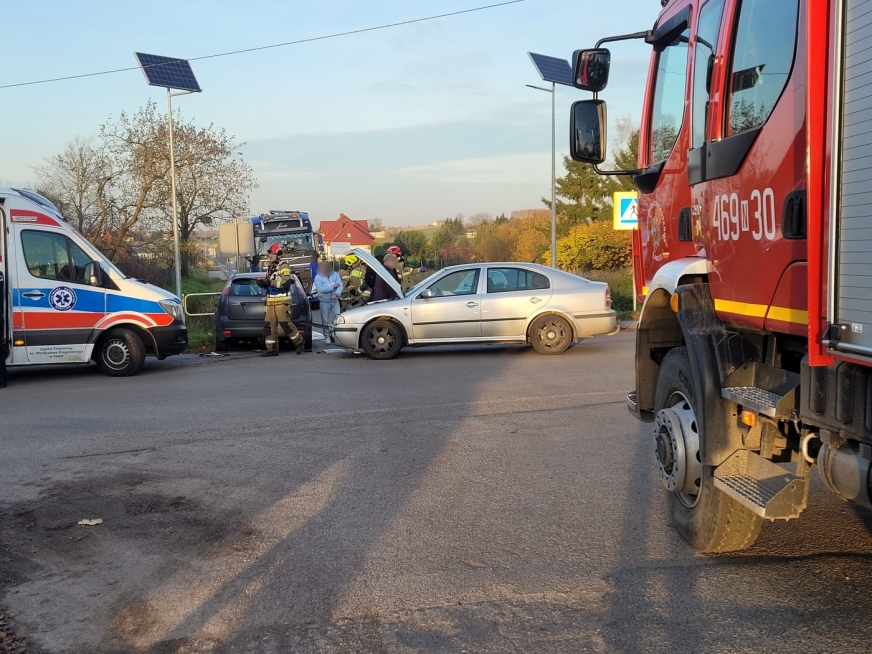 Skrzyżowanie pozostało przejezdne; na miejscu, poza ratownikami medycznymi, interweniują strażacy i policjanci, którzy wyjaśniają przyczynę i okoliczności zdarzenia.
