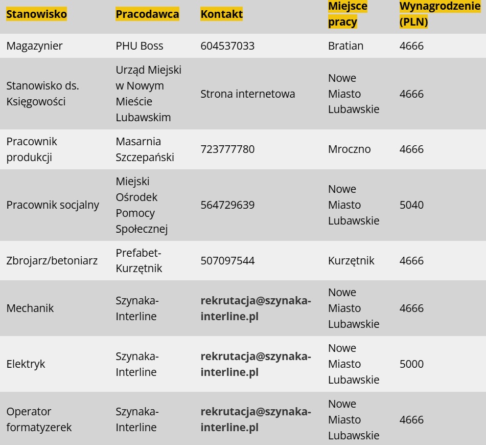 Jak co czwartek prezentujemy naszym Czytelnikom przegląd najnowszych ofert pracy pochodzących z powiatu nowomiejskiego. Szukacie zatrudnienia? Sprawdźcie poniżej najważniejsze szczegóły aktualnych wakatów w lokalnych przedsiębiorstwach i instytucjach publicznych.