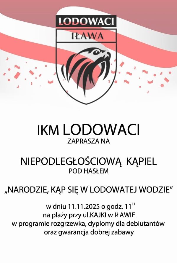 Zapraszają wszystkich miłośników zimnych kąpieli - ale też debiutantów - na wspólną niepodległościową kąpiel na "dzikiej" plaży w Iławie. W naszym mieście to symboliczne otwarcie nowego sezonu morsowania. Wejście do wody o godzinie 11:11, nie może Was zabraknąć!