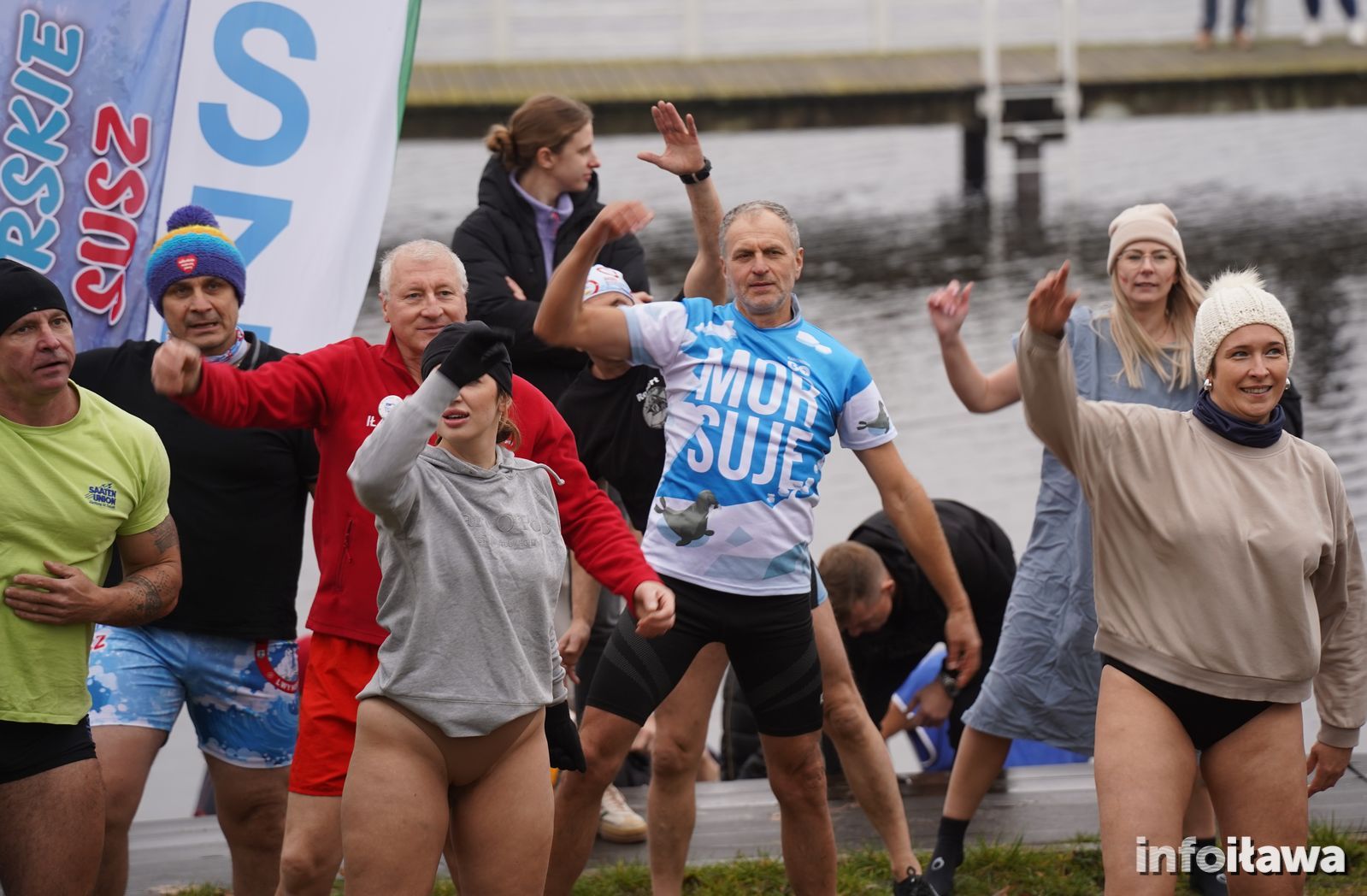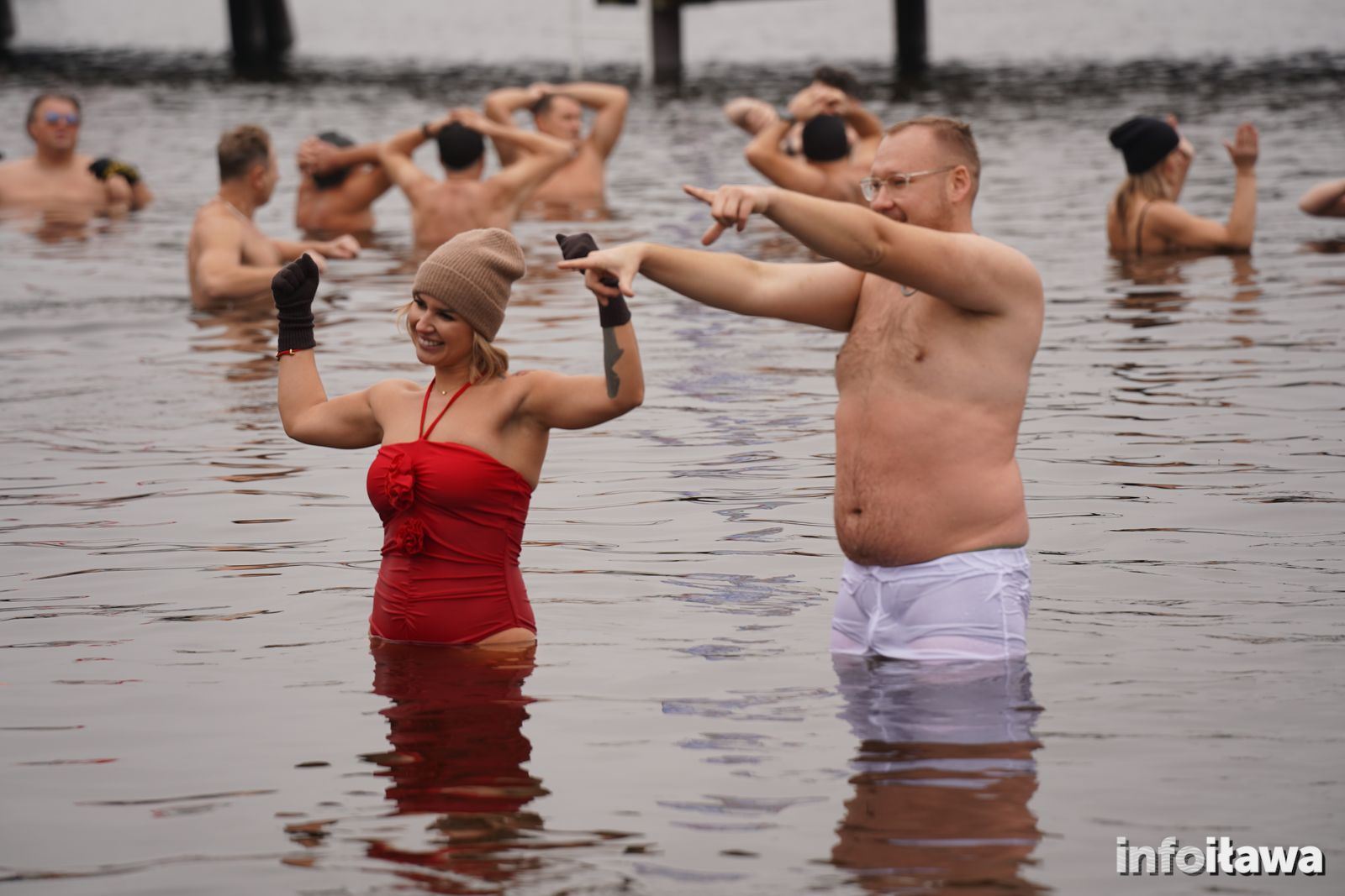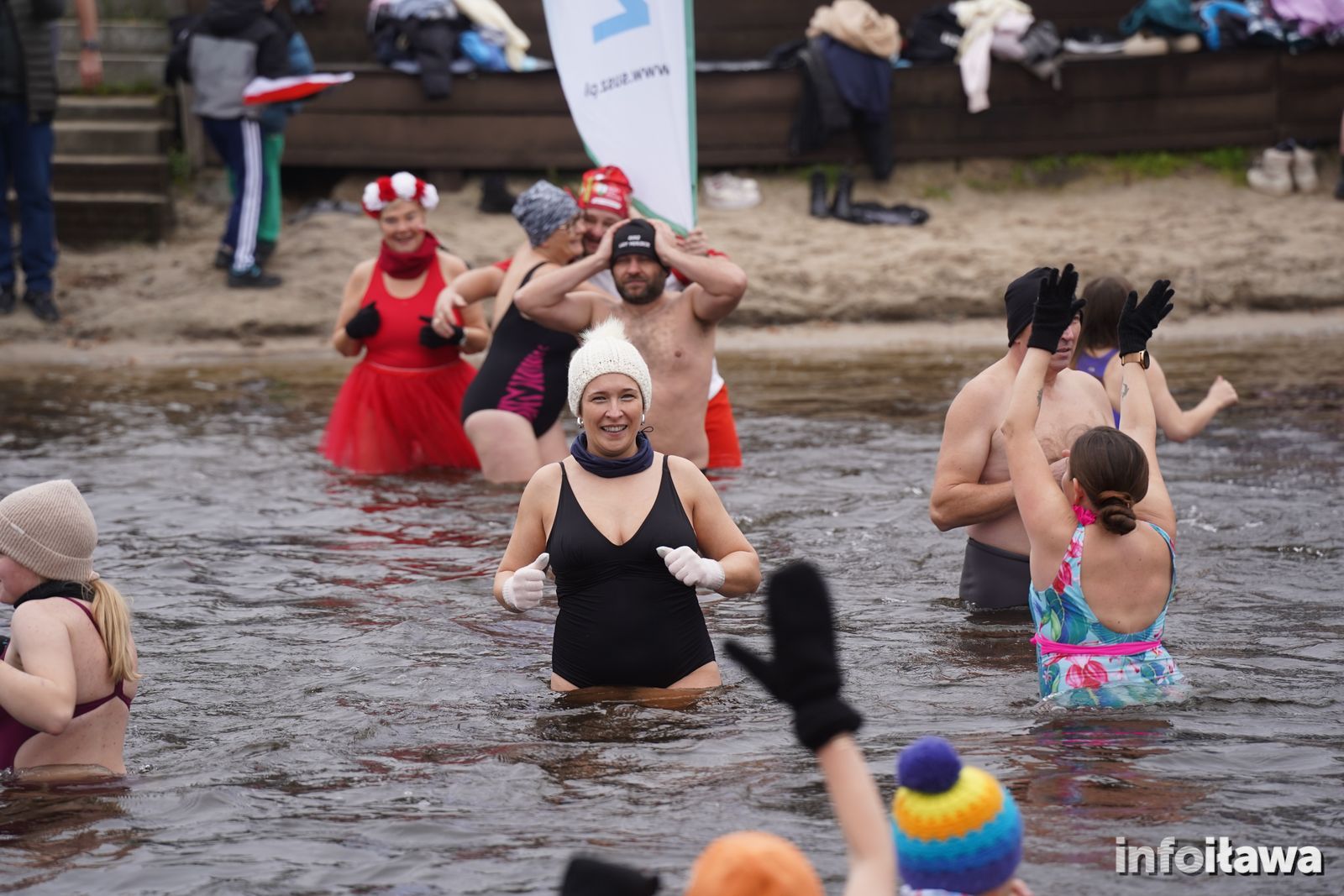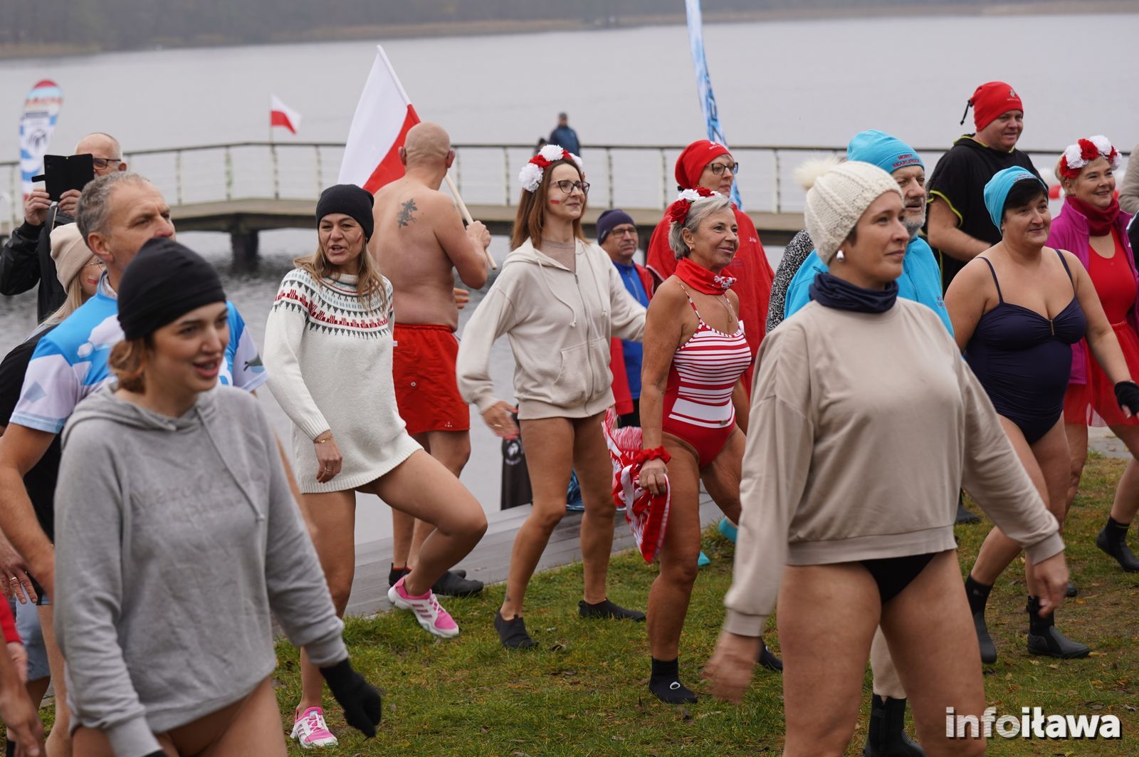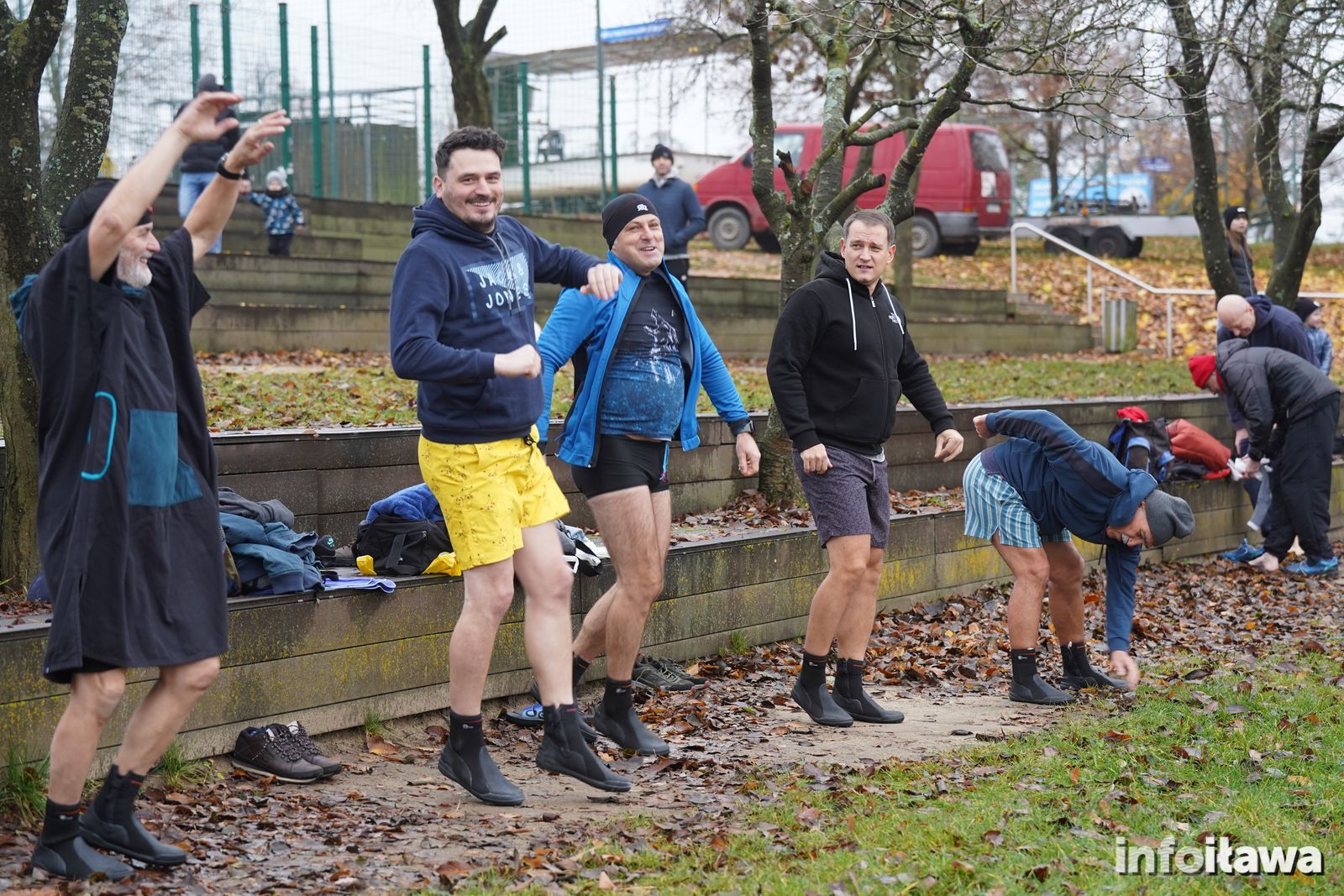 Do wody weszli o symbolicznej godzinie 11:11 po rozgrzewce poprowadzonej przez trenerki z iławskiej Endorfiny. A po kąpieli można się było pointegrować, rozgrzać przy koksownikach czy spróbować pożywnych pyszności ze stoiska przygotowanego przez Koło Gospodyń Wiejskich w Ząbrowie. Impreza miała też wymiar charytatywny – można było dorzucić swoją cegiełkę do zbiórki na rzecz zmagającej się z mukowiscydozą Anielki z Iławy; więcej o tej akcji pomocy pod tym linkiem.