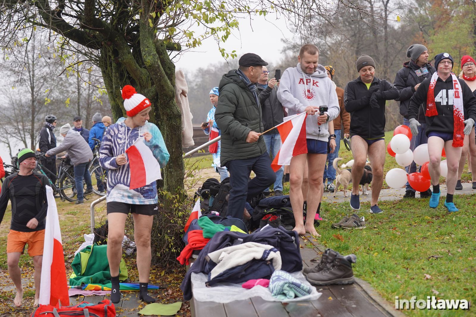 "Narodzie, kąp się w lodowatej wodzie!" - czyli niepodległościowa kąpiel Lodowatych i przyjaciół :-). (Fot. Info Iława.)