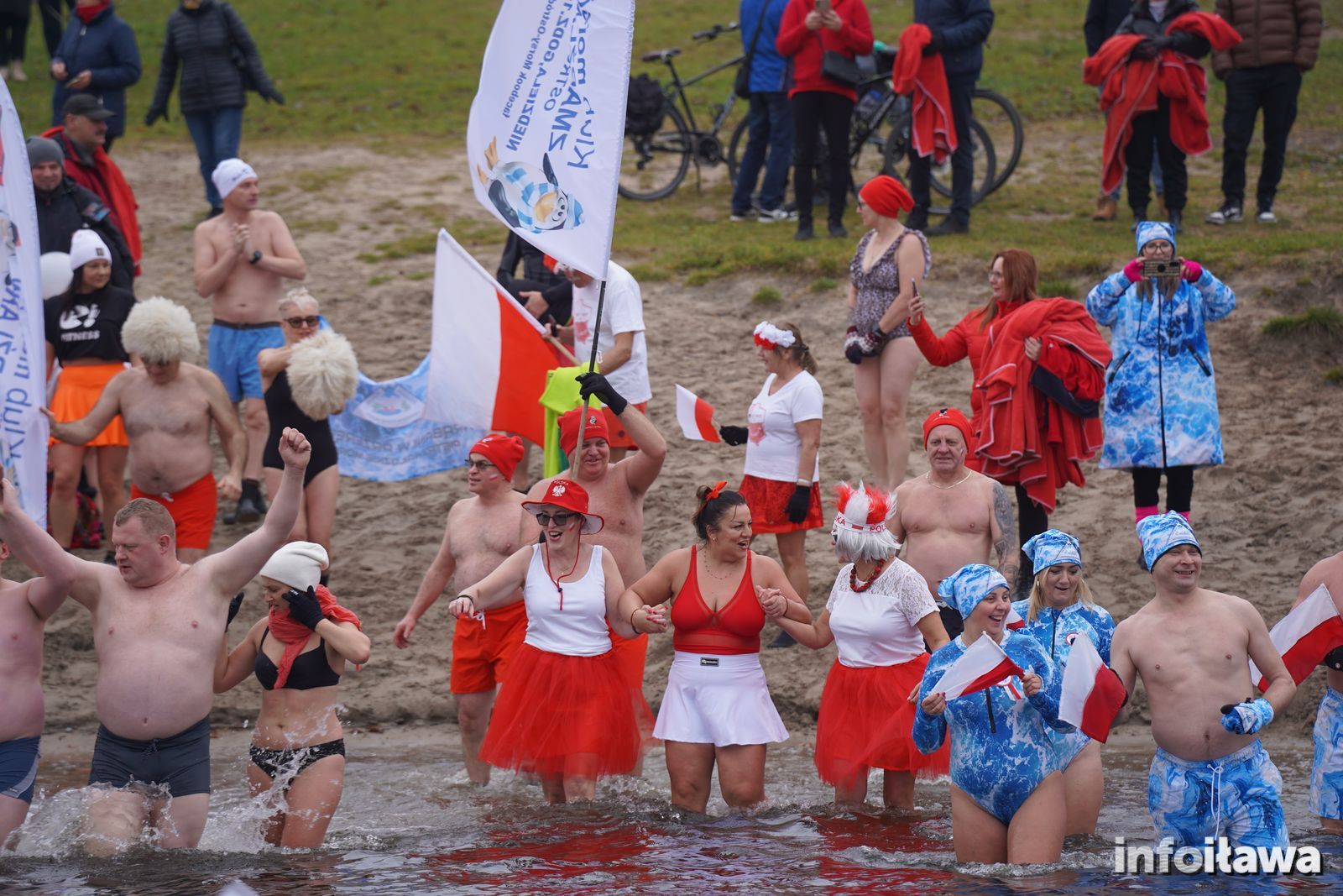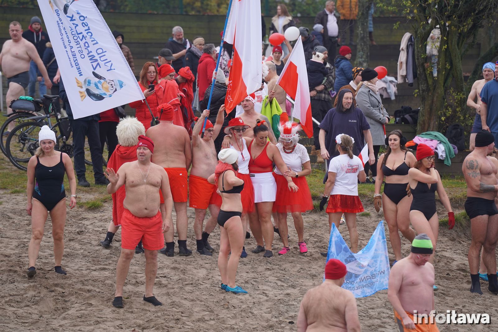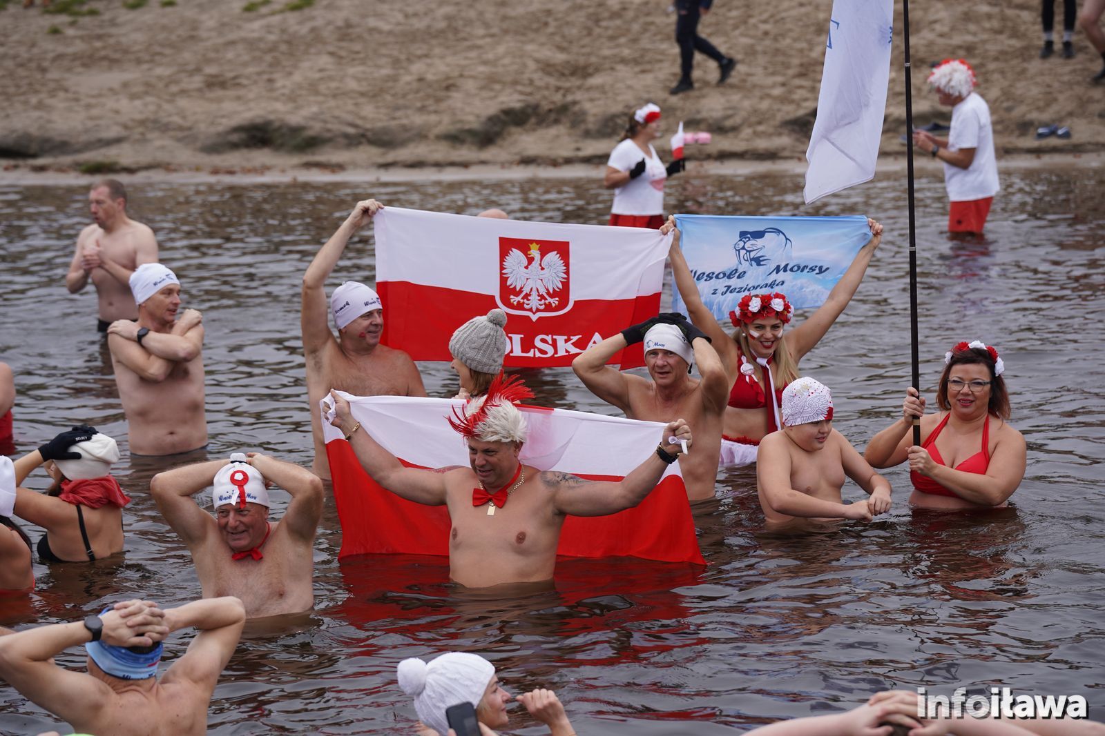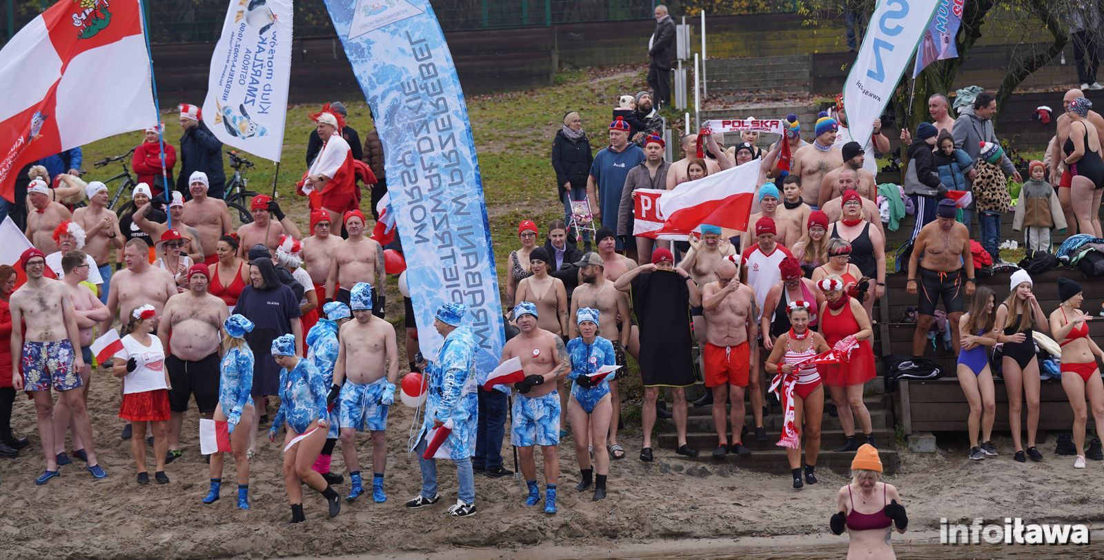 Wyrzut endorfin – a do tego patriotyzm w najlepszym, bo radosnym wydaniu! Tak najkrócej można podsumować dzisiejszą świąteczną kąpiel na "dzikiej" plaży w Iławie.