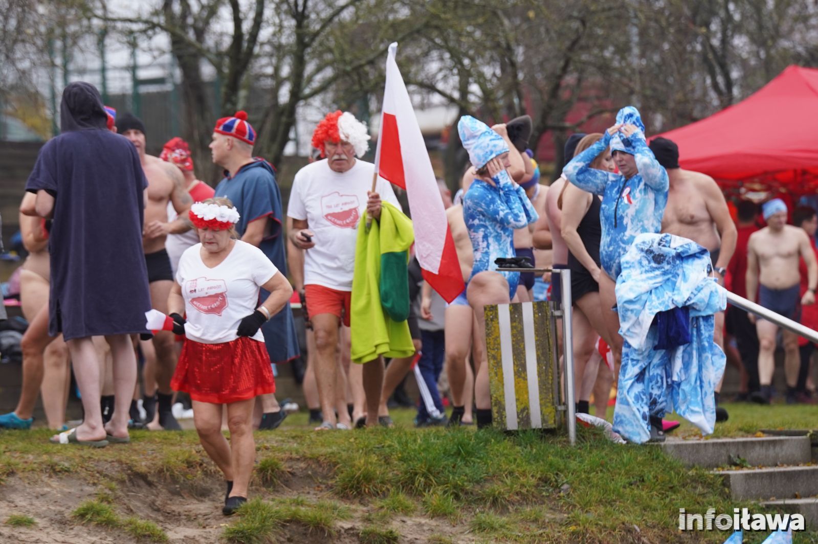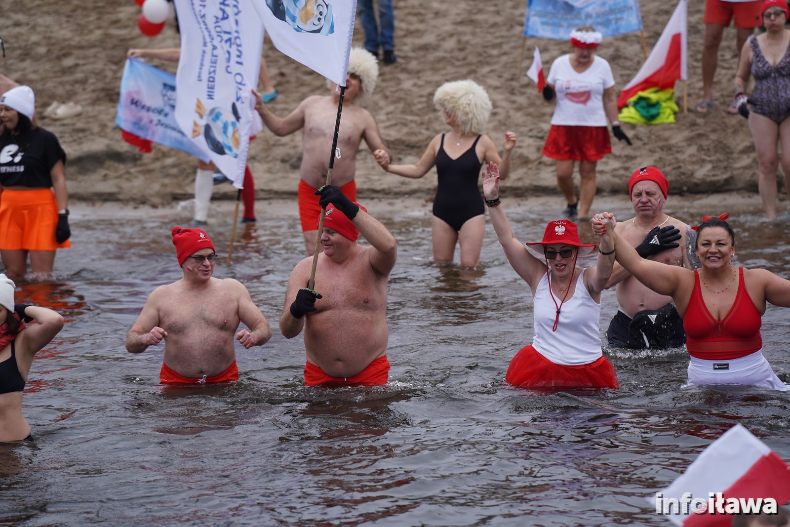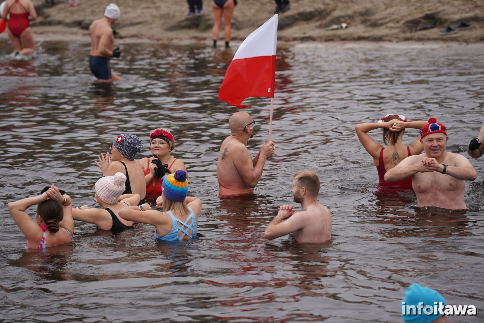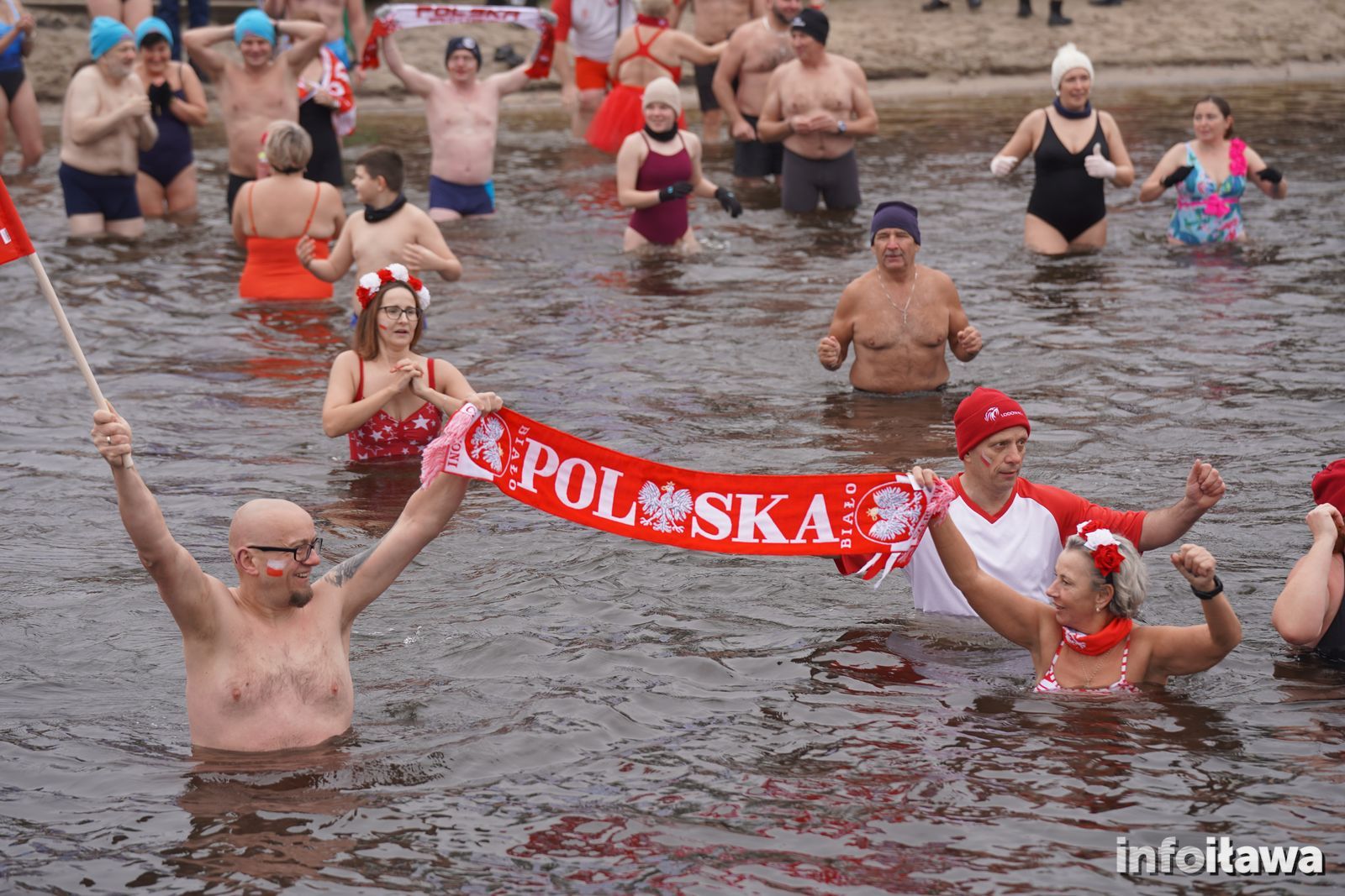 Wyrzut endorfin – a do tego patriotyzm w najlepszym, bo radosnym wydaniu! Tak najkrócej można podsumować dzisiejszą świąteczną kąpiel na "dzikiej" plaży w Iławie.