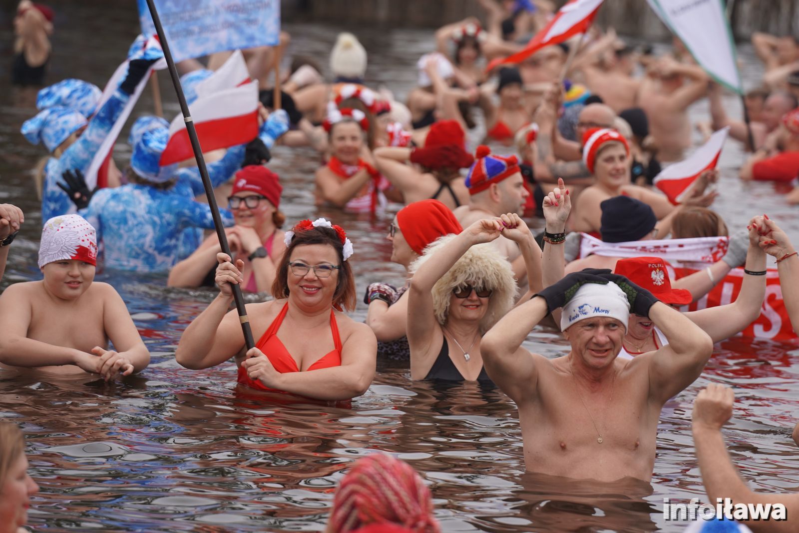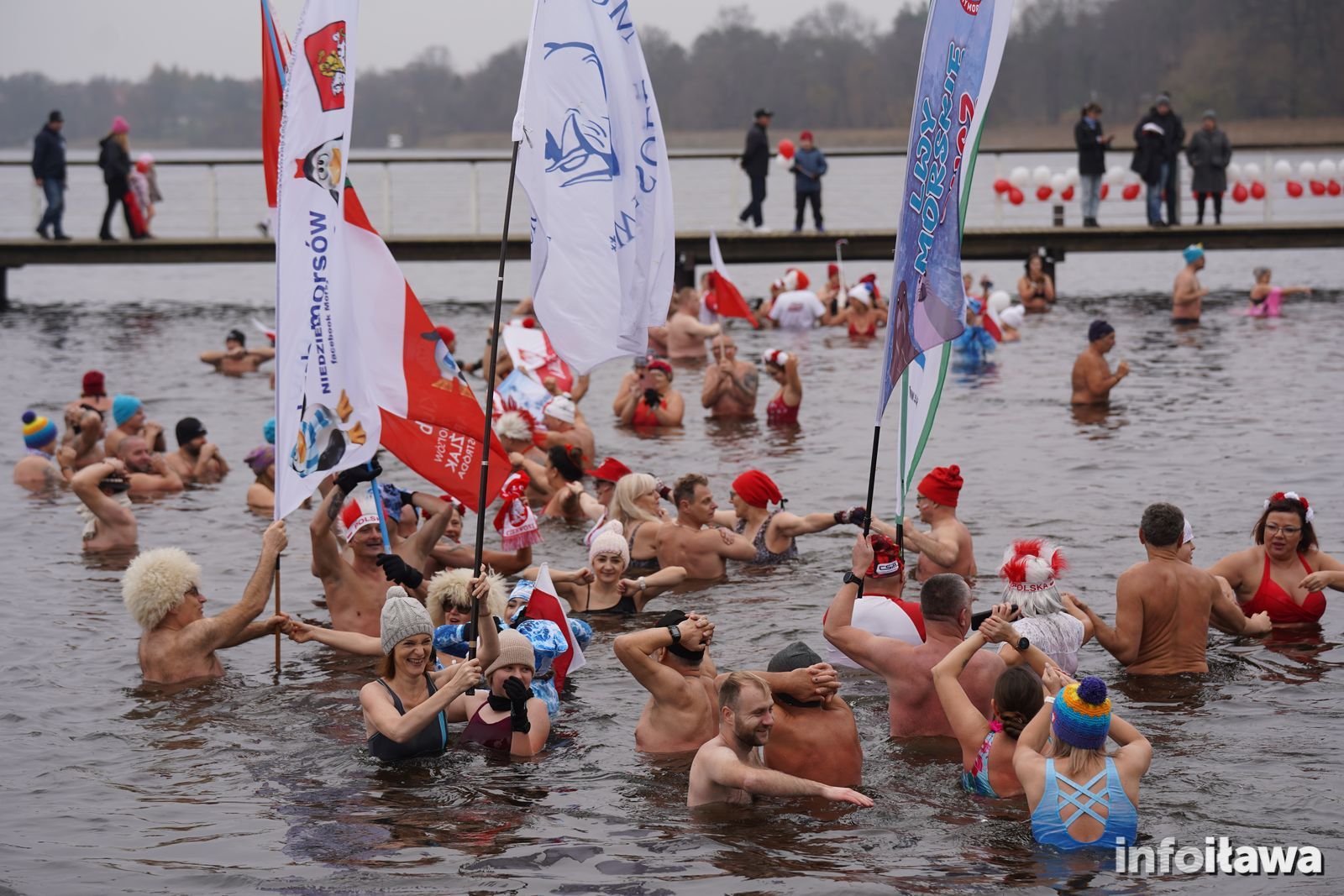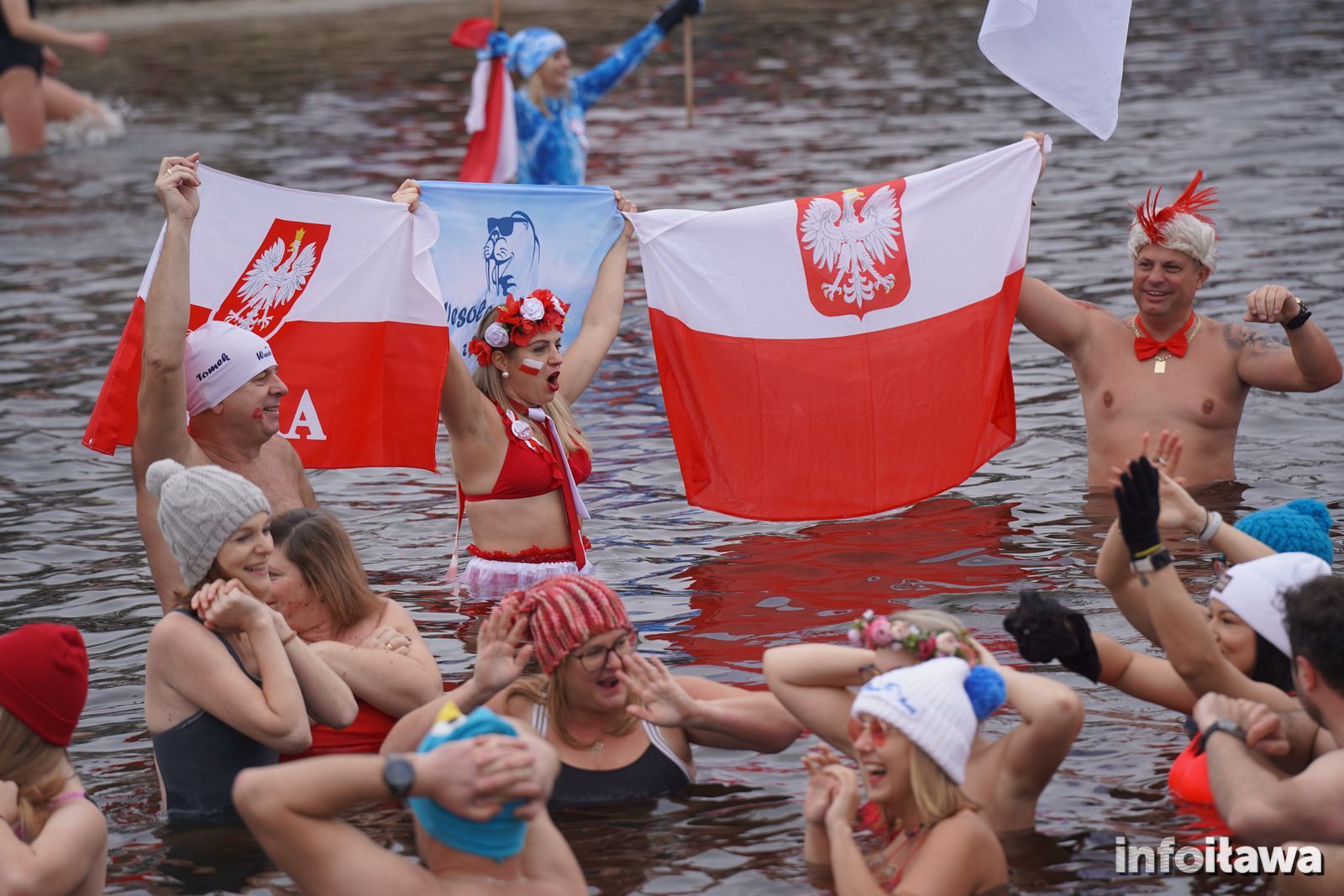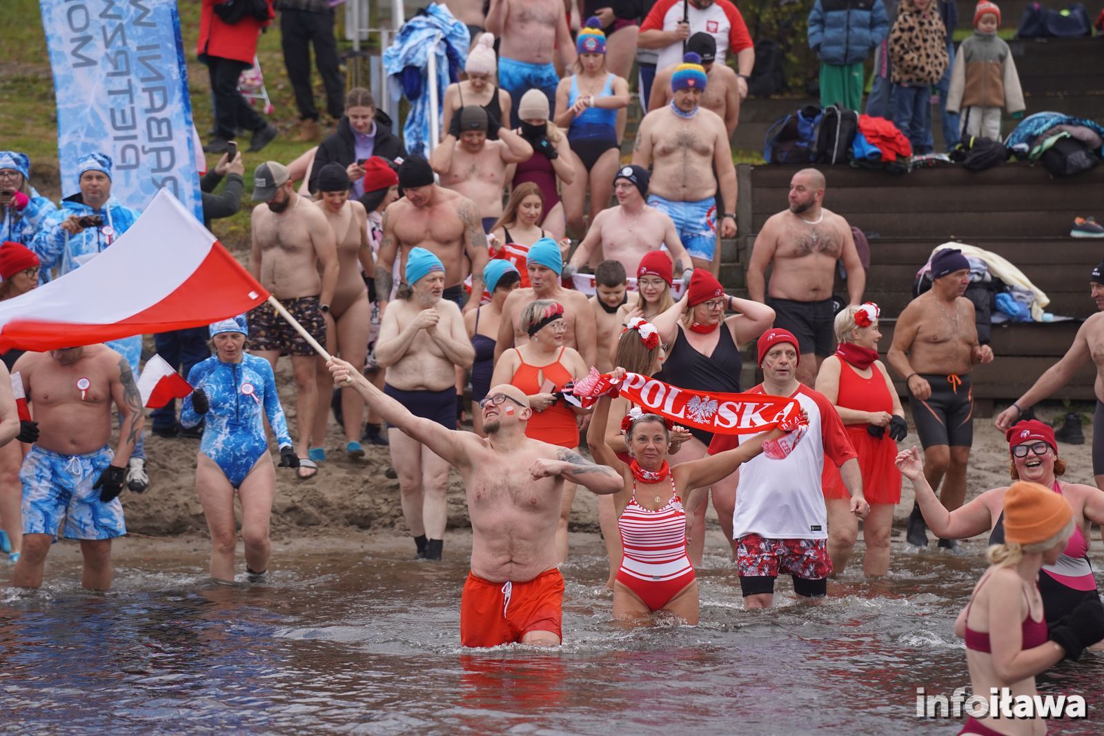 Wyrzut endorfin – a do tego patriotyzm w najlepszym, bo radosnym wydaniu! Tak najkrócej można podsumować dzisiejszą świąteczną kąpiel na "dzikiej" plaży w Iławie.