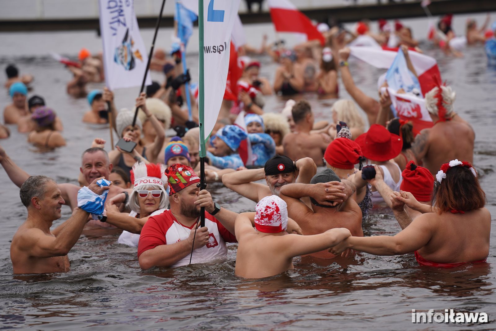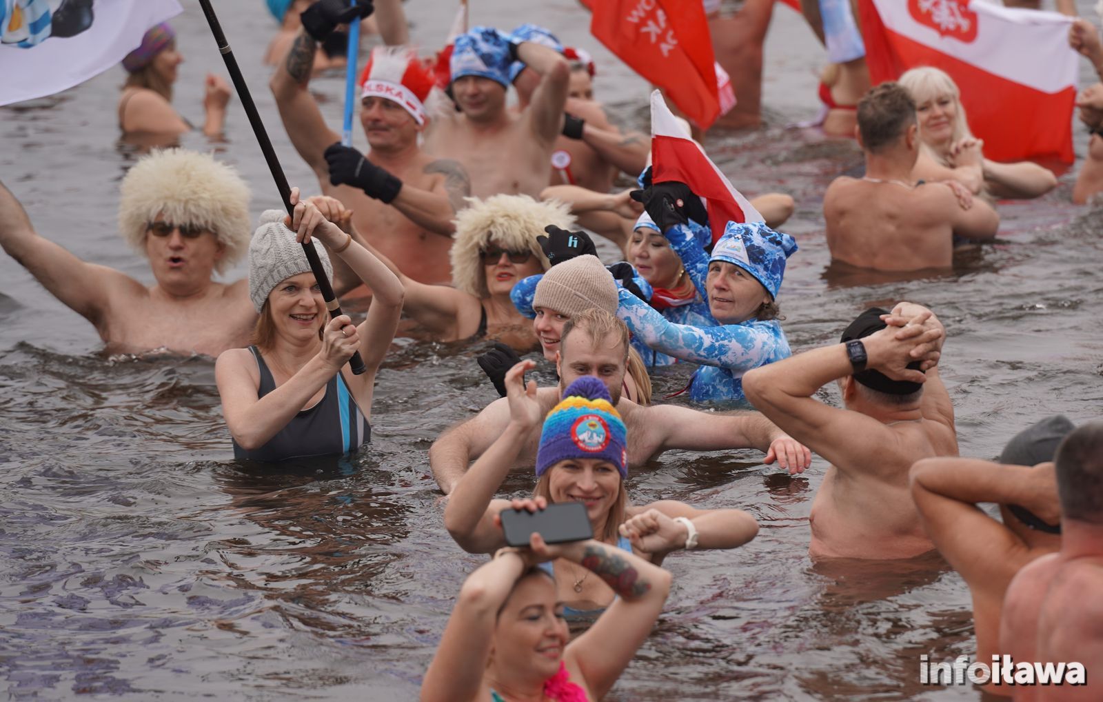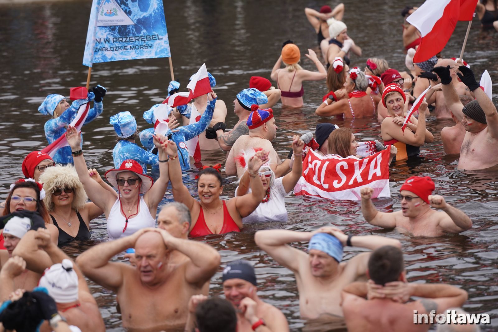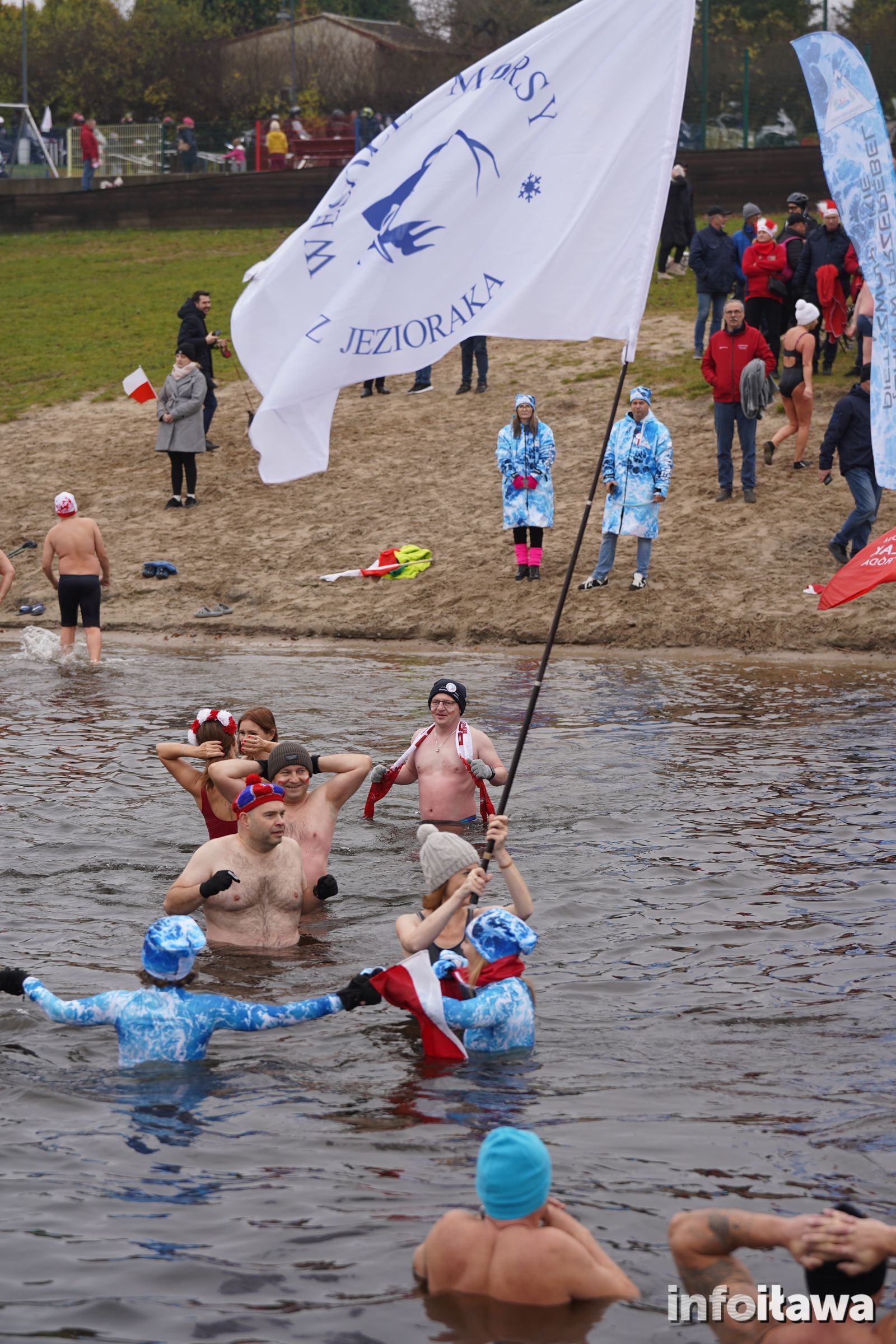 Wyrzut endorfin – a do tego patriotyzm w najlepszym, bo radosnym wydaniu! Tak najkrócej można podsumować dzisiejszą świąteczną kąpiel na "dzikiej" plaży w Iławie.