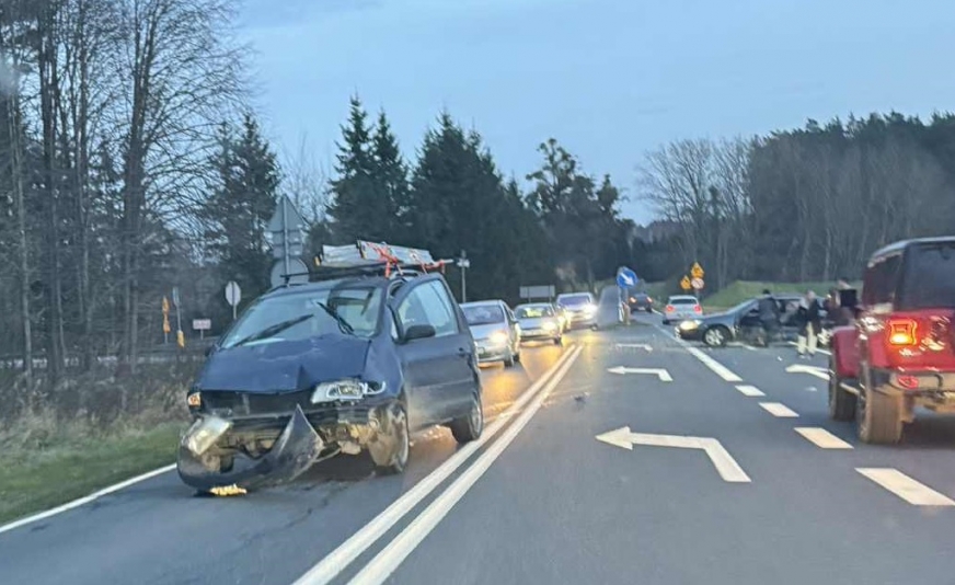 Zdarzenie drogowe z udziałem dwóch samochodów osobowych i utrudnienia na odcinku wojewódzkiej trasy numer 521 między Iławą a Suszem.