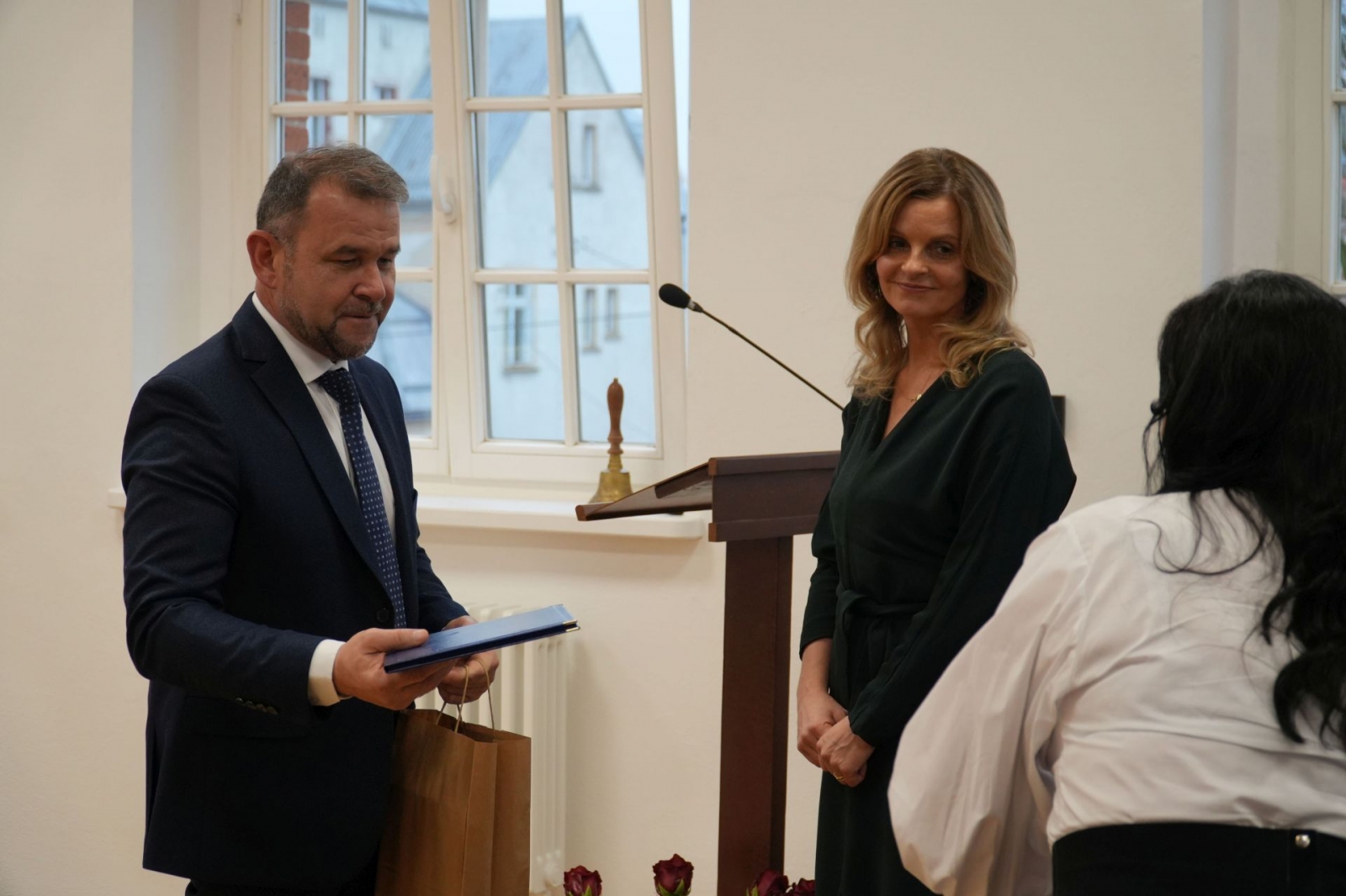 Przekazanie klucza do szkoły dyrektorce Dagmarze Wejnarskiej, przecięcie wstęgi, pierwszy dzwonek (jeszcze klasyczny, ale w szkole zamontowano taki sygnalizator, który nie powoduje stresu u uczniów) – te symboliczne gesty i elementy oficjalnie zakończyły remont i otworzyły nowy etap ZS.