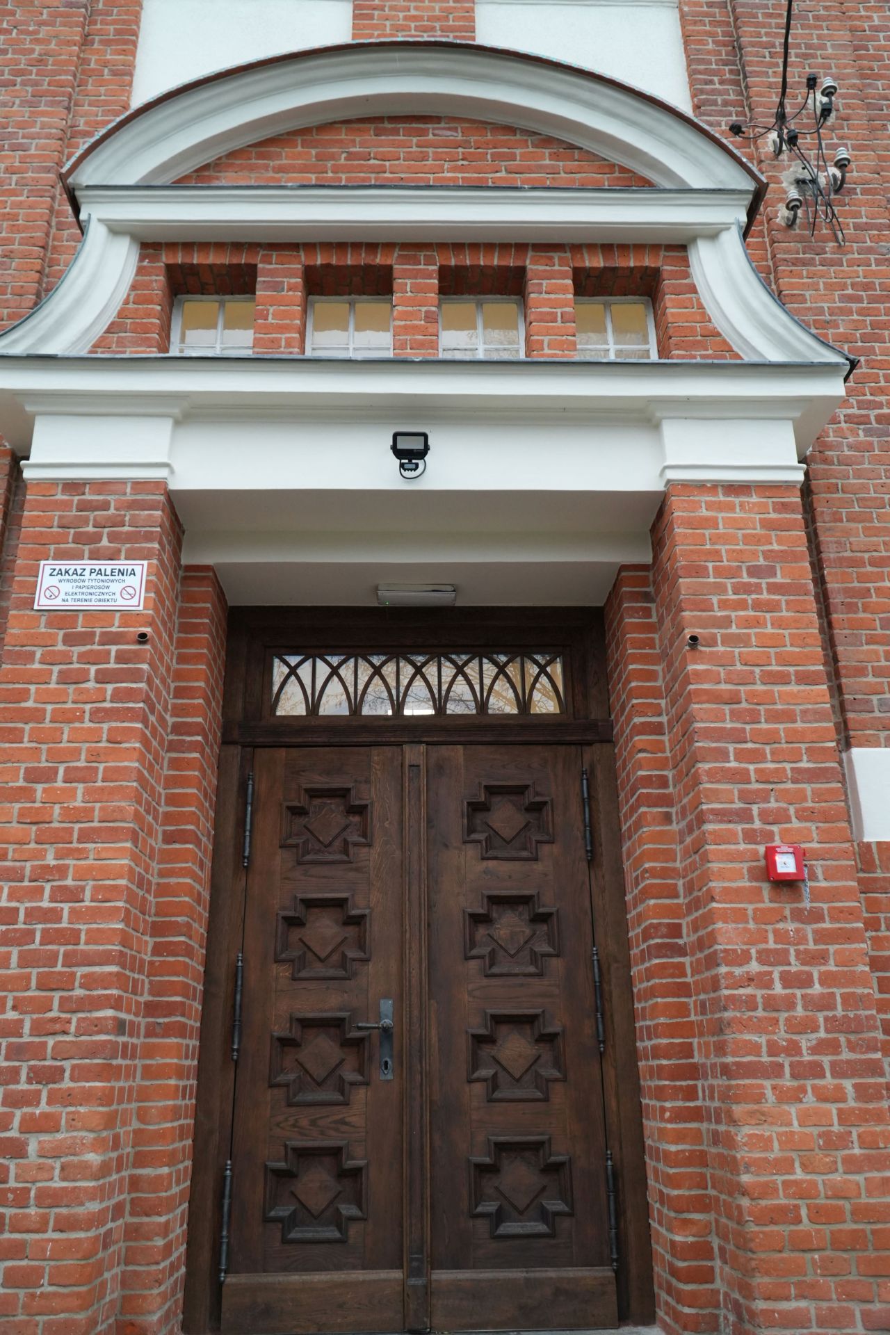 Główne drzwi wejściowe, które przed remontem pokryte były kilkoma warstwami farby olejnej. Fot. Przeciesz Marketing