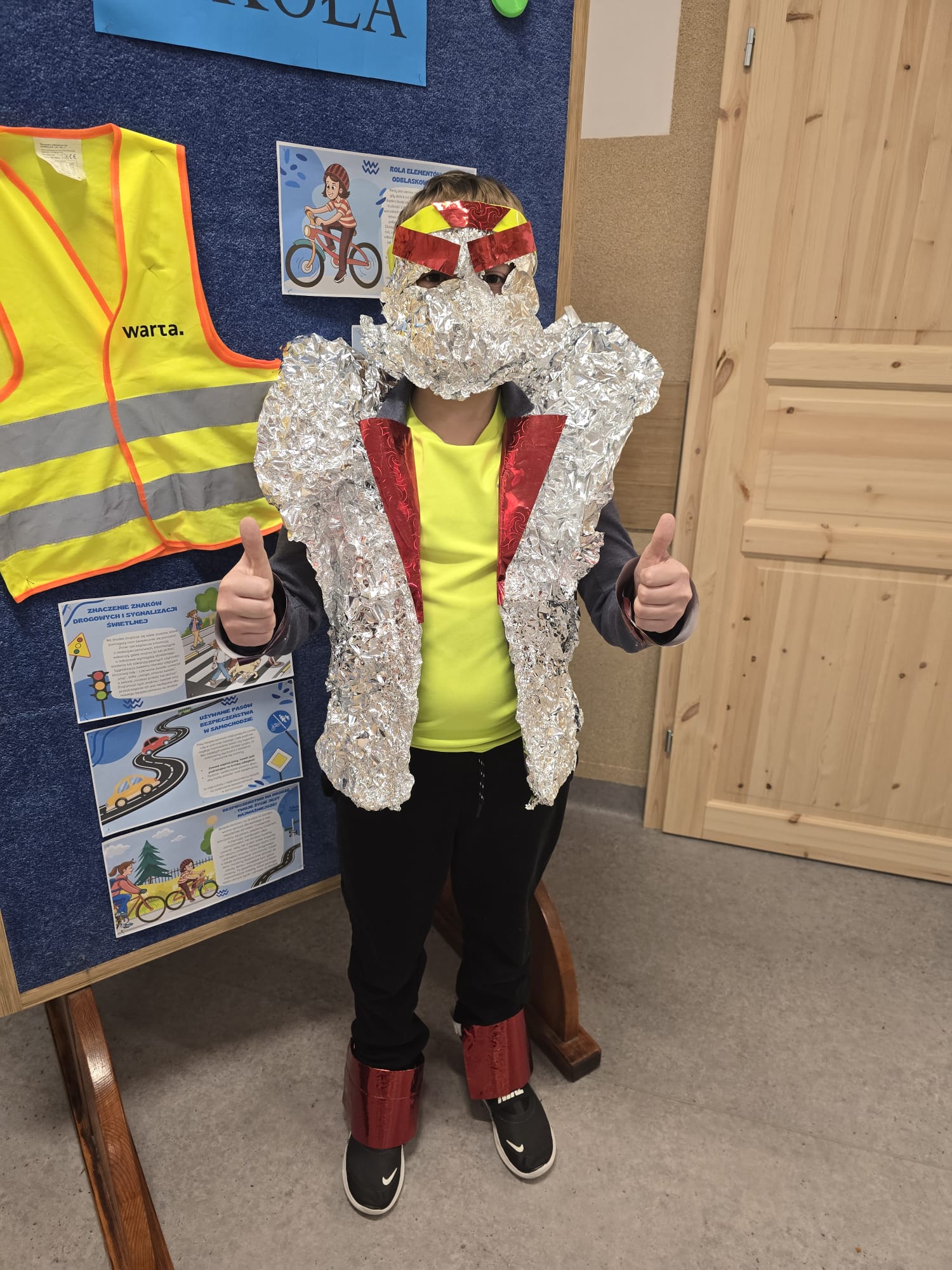 - odblaskowy pokaz mody, podczas którego uczniowie prezentowali pomysłowe stroje wyposażone w elementy odblaskowe.