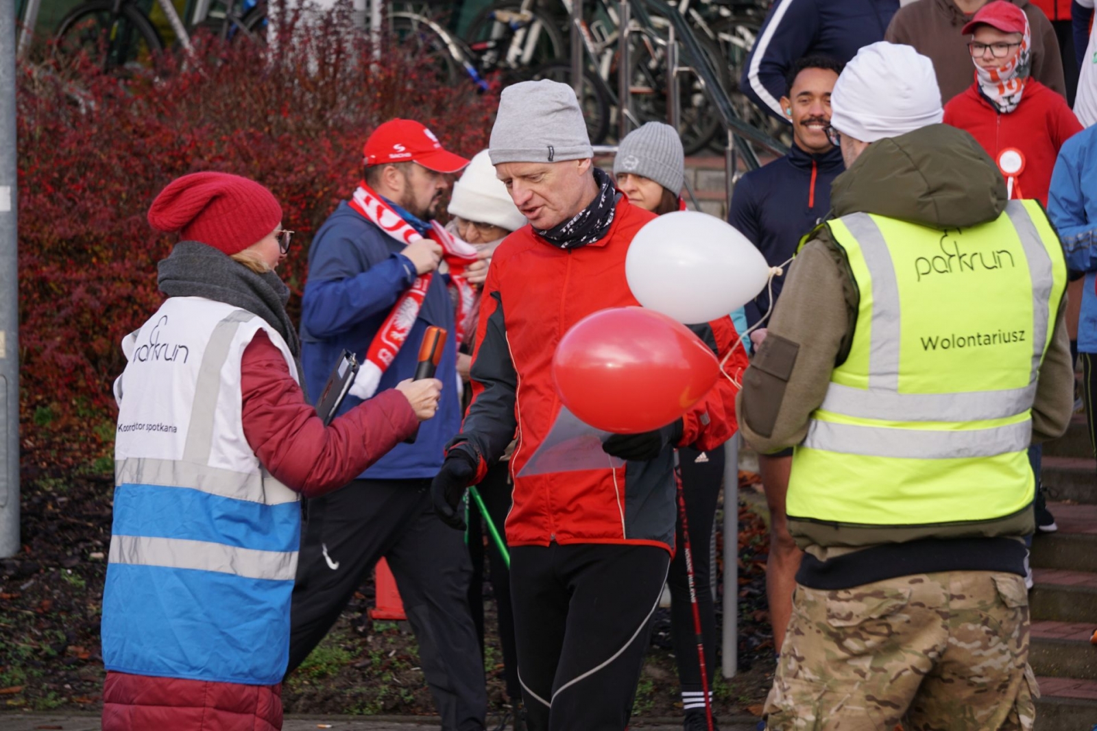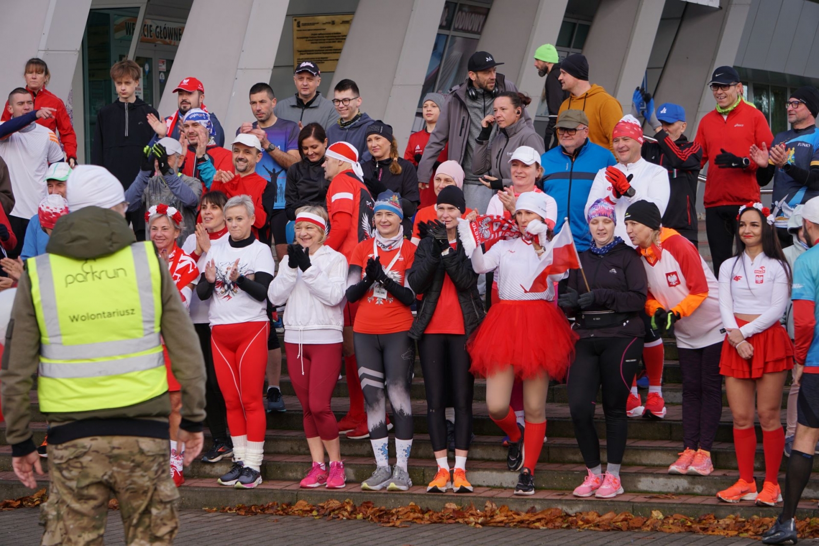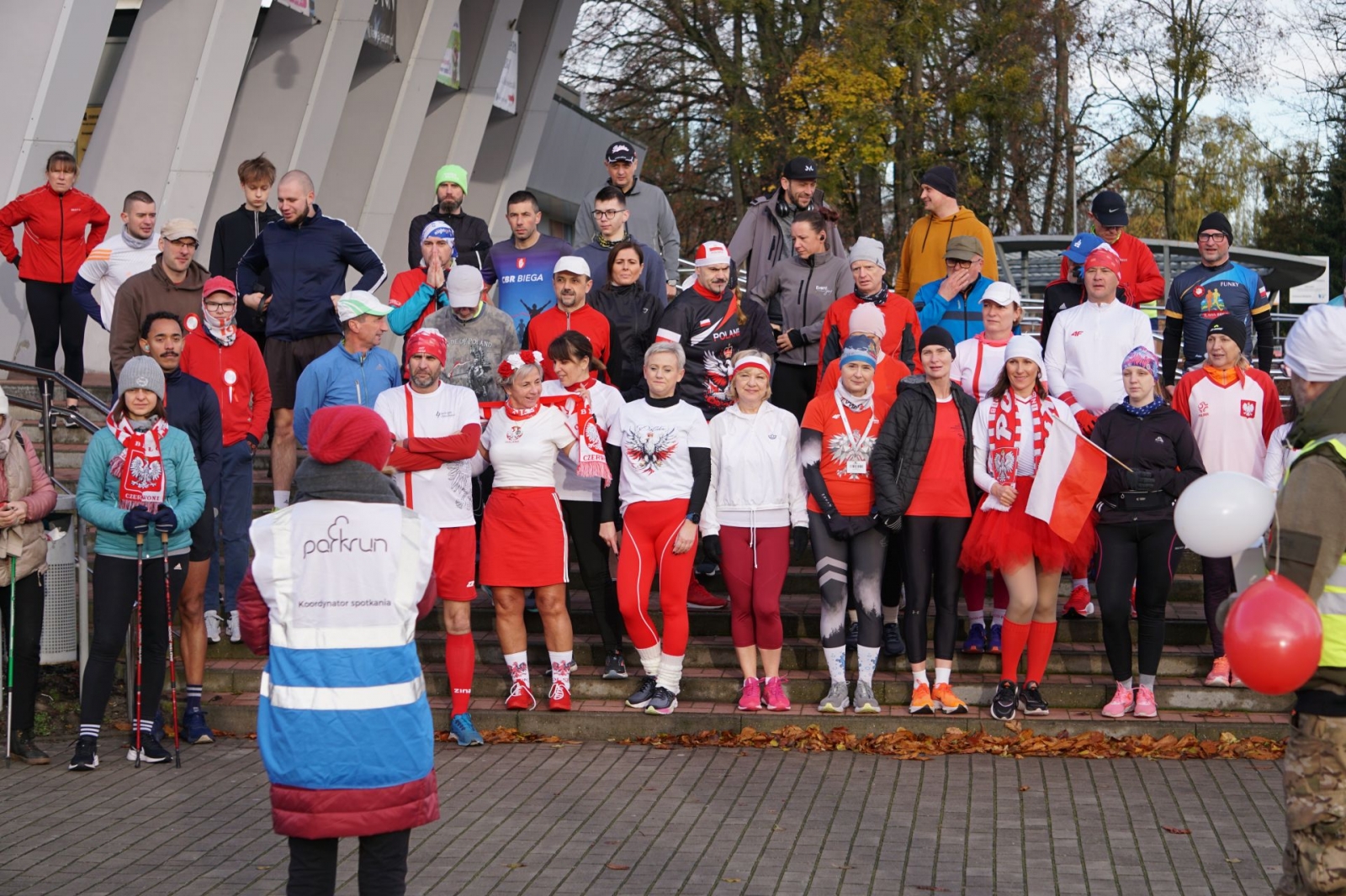 Wersja mikołajkowa, halloweenowa itd. Oczywiście, patriotycznej też nie może zabraknąć! W dzisiejszym parkrunie pobiegło 61 osób, wiele z nich przyszło w biało-czerwonych barwach podkreślając swoje przywiązanie (miłość?) do ojczyzny. Była to już 259 edycja tego biegu.