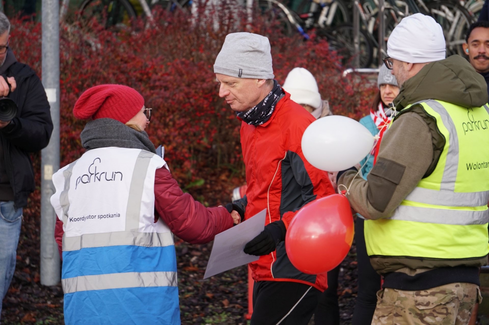 ZOBACZ ZDJĘCIA: Biało-czerwony parkrun Mały Jeziorak, Iława (15.11.2025), fot. Mateusz Partyga / Info Iława