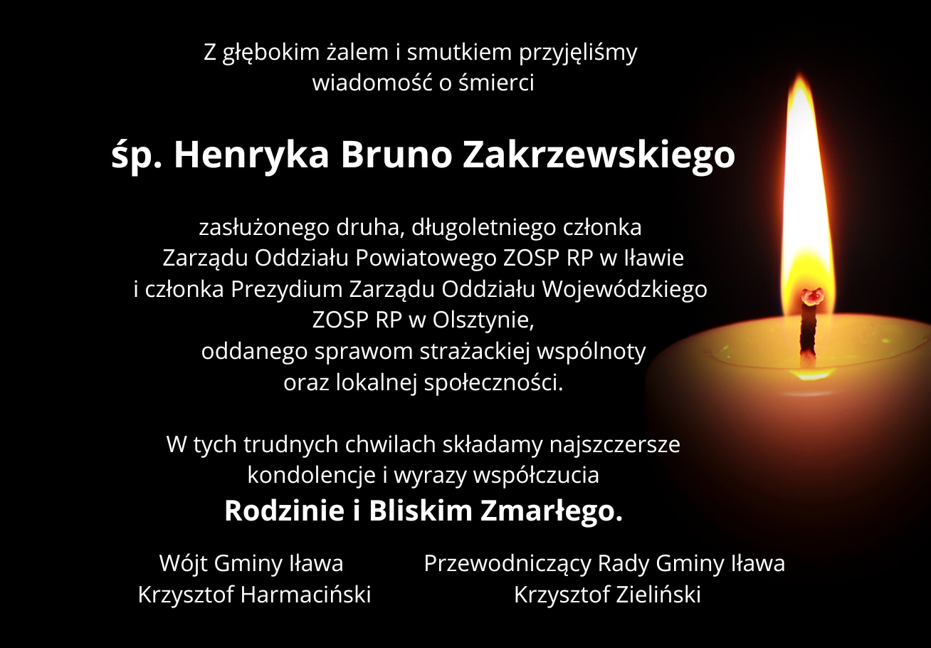 „Był oddany sprawom strażackiej wspólnoty oraz lokalnej społeczności”. Przedstawiciele samorządu Gminy Iława na czele z Wójtem Gminy Iława Krzysztofem Harmacińskim oraz Przewodniczącym Rady Gminy Iława Krzysztofem Zielińskim z głębokim żalem i smutkiem przyjęli wiadomość o śmierci śp. Henryka Zakrzewskiego i składają najszczersze kondolencje Rodzinie i Bliskim Zmarłego.