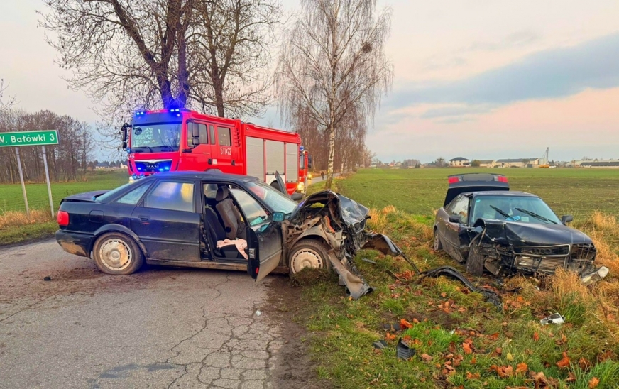Dwa takie same modele Audi – Audi 80 – spotkały się na drodze pod Nowym Miastem Lubawskim. Niestety, w nieciekawych okolicznościach...