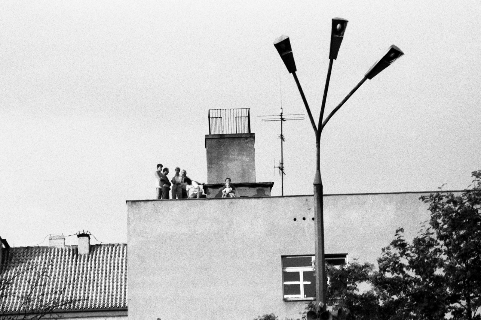 Cześć kibiców mecz Jezioraka z reprezentacją Polski oglądała z ... dachu pobliskiego Liceum (fot. Andrzej Musiński)