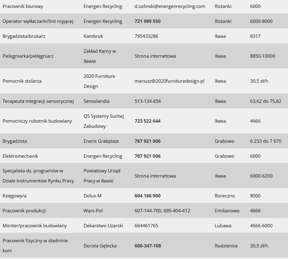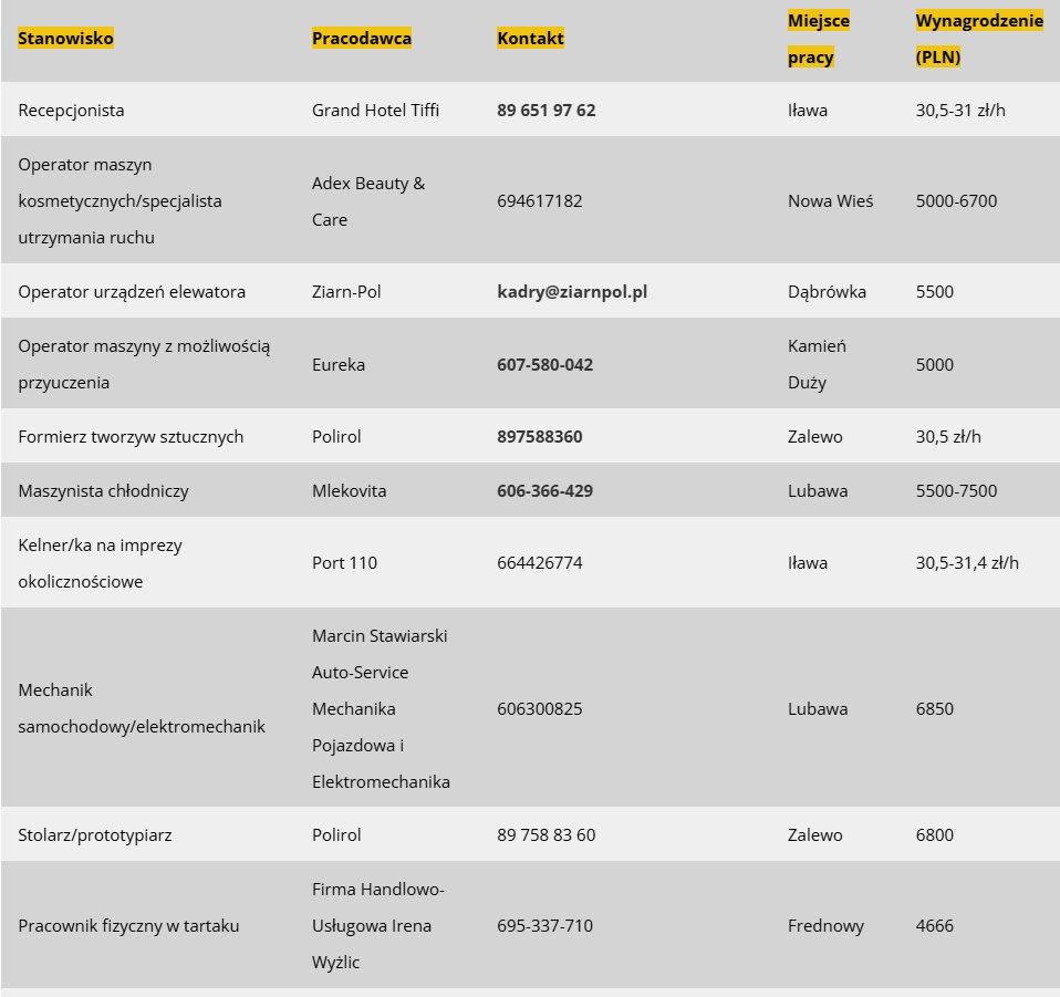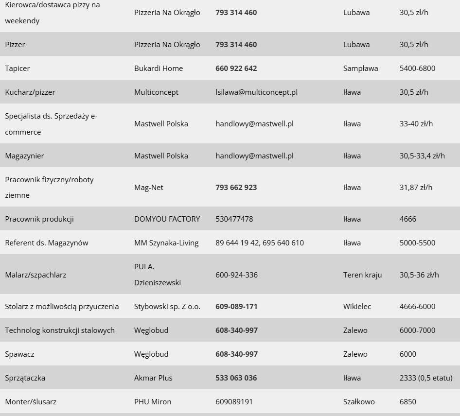 Jak co poniedziałek mamy dla Was przegląd najnowszych ofert pracy dostępnych w Iławie i w powiecie. Tym razem jest ich prawie 50. Oferty pochodzą z bazy Powiatowego Urzędu Pracy w Iławie, z ostatnich 7 dni.