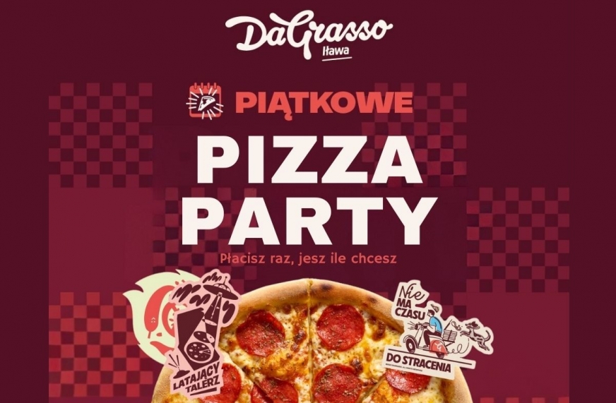Pizza Party potrwa przez cztery kolejne piątki. Szczegóły dostępne są w lokalu Da Grasso Iława. Zapraszamy!