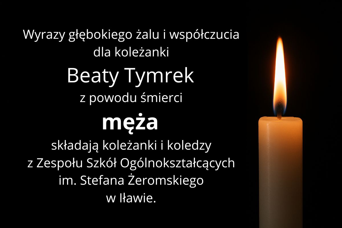 Pracownicy Zespołu Szkół Ogólnokształcących im. Stefana Żeromskiego w Iławie składają koleżance Beacie Tymrek najszczersze kondolencje z powodu śmierci męża.