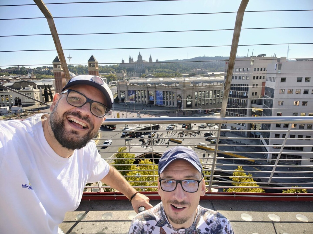A konkretnie od punktu widokowego, który znajduje się na dachu centrum handlowego Arenas de Barcelona. Jest to przebudowana dawna arena walk byków, położona przy Plaça d’Espanya (Plac Hiszpański) w Barcelonie. Z jego tarasu roztacza się panoramiczny widok 360 stopni na plac, a w szczególności na dwie Wieże Weneckie, Avinguda de la Reina Maria Cristina oraz na wzgórze Montjuïc, gdzie widoczny jest Palau Nacional (Narodowe Muzeum Sztuki Katalońskiej). W tym dniu naszym miejscem docelowym był pewien park, o którym wie każdy, kto choć przez chwilę zainteresował się Barceloną.