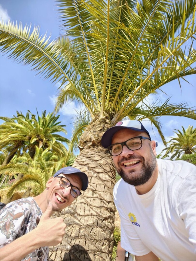 Wojciech Kaniuka i jego wieloletni asystent osobisty Piotr Heyda - tutaj podczas wyprawy życia do Barcelony.