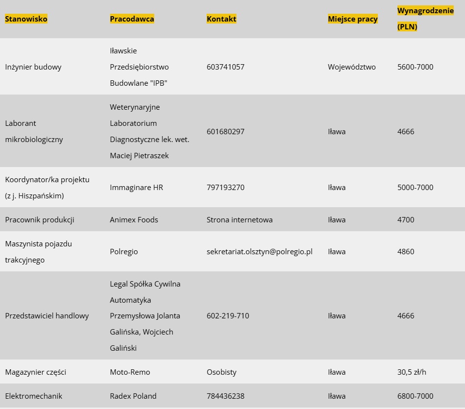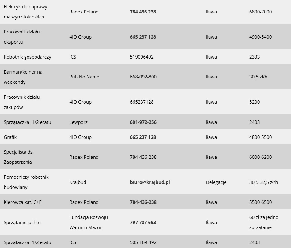 Jak co poniedziałek mamy dla Was przegląd najnowszych ofert pracy dostępnych w Iławie i w powiecie. Tym razem jest ich około 20. Oferty pochodzą z bazy Powiatowego Urzędu Pracy w Iławie, z ostatnich 7 dni.