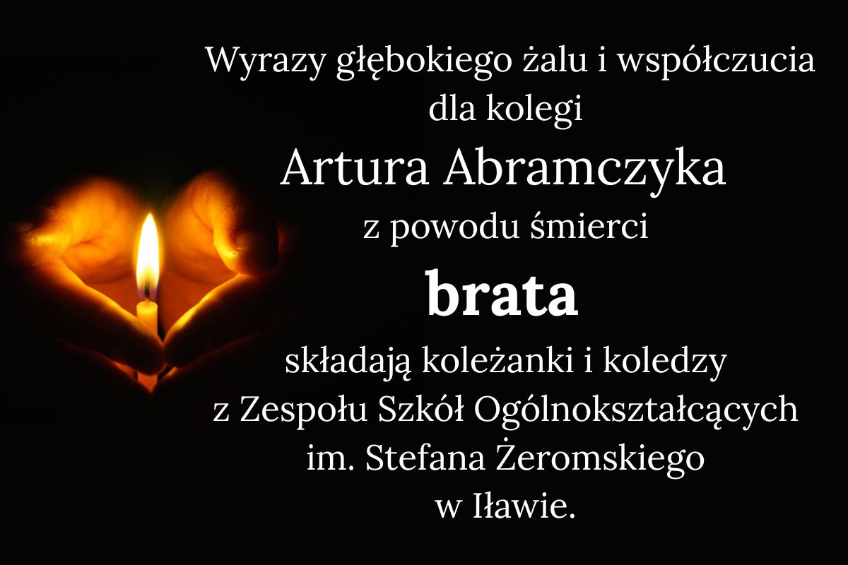 Pracownicy Zespołu Szkół Ogólnokształcących im. Stefana Żeromskiego w Iławie przesyłają najszczersze kondolencje oraz wyrazy wsparcia i otuchy koledze Arturowi Abramczykowi z powodu śmierci brata.