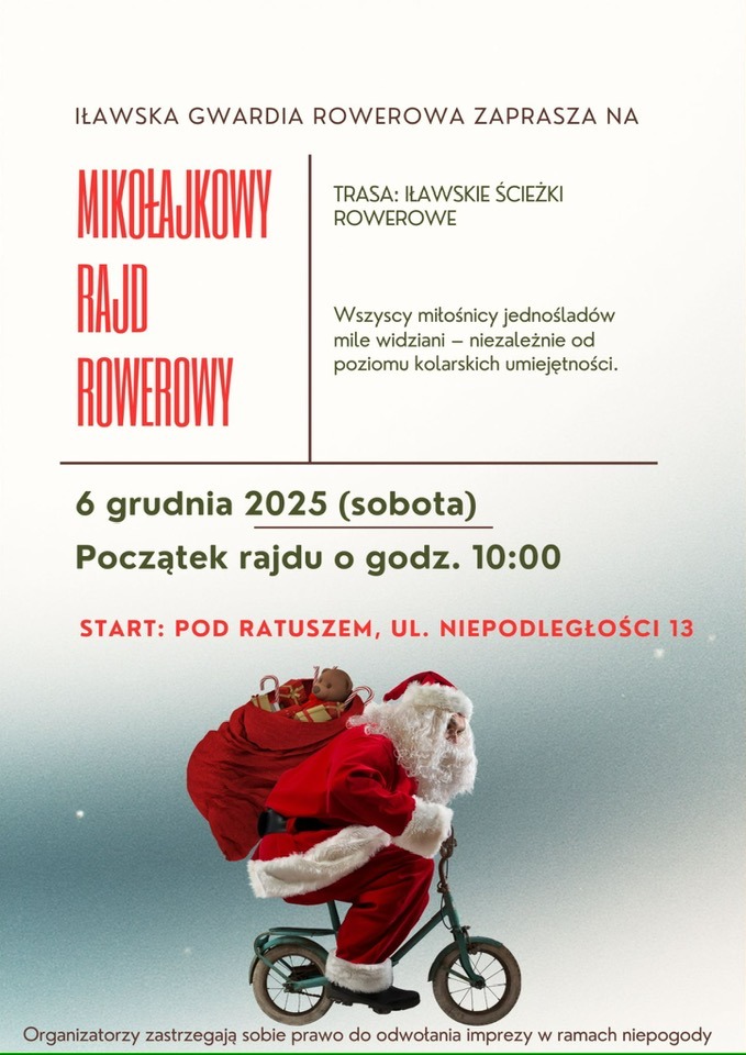 Mikołajkowy Rajd Rowerowy z Iławską Gwardią Rowerową