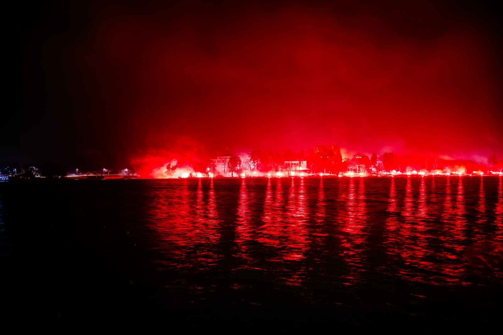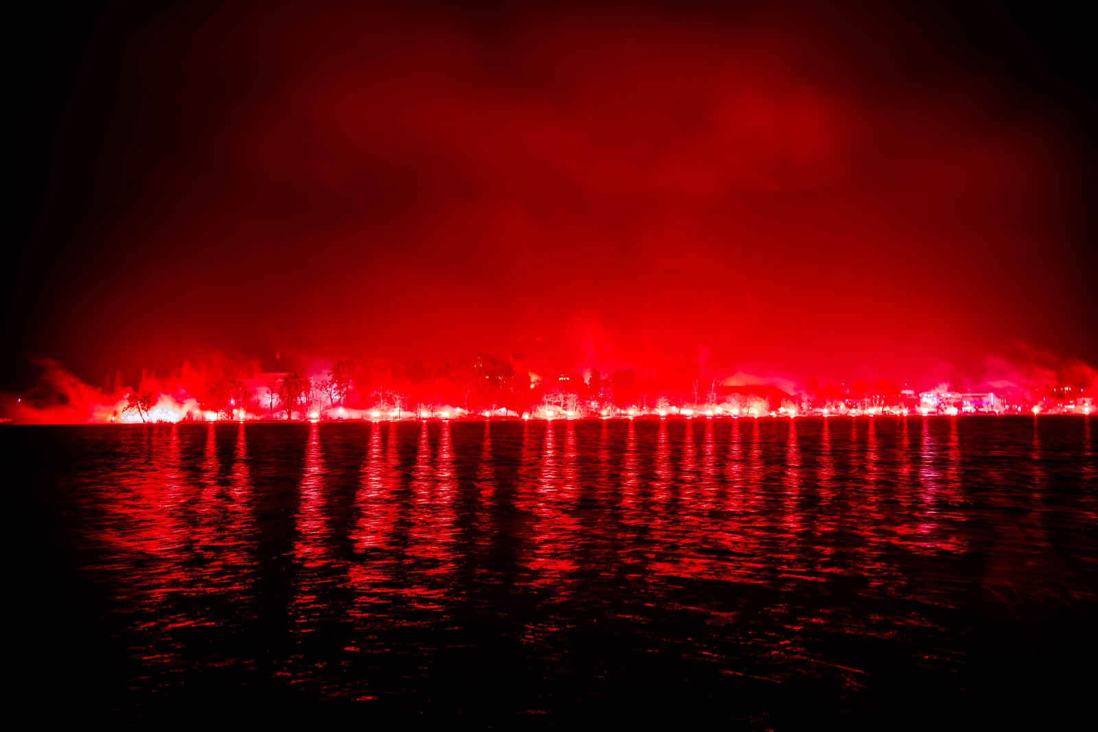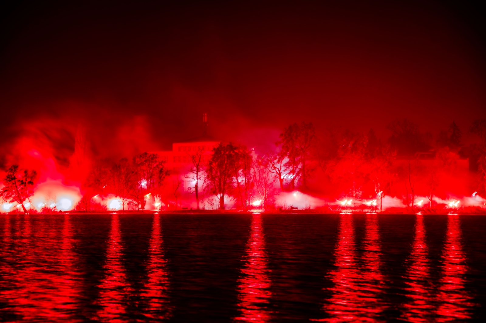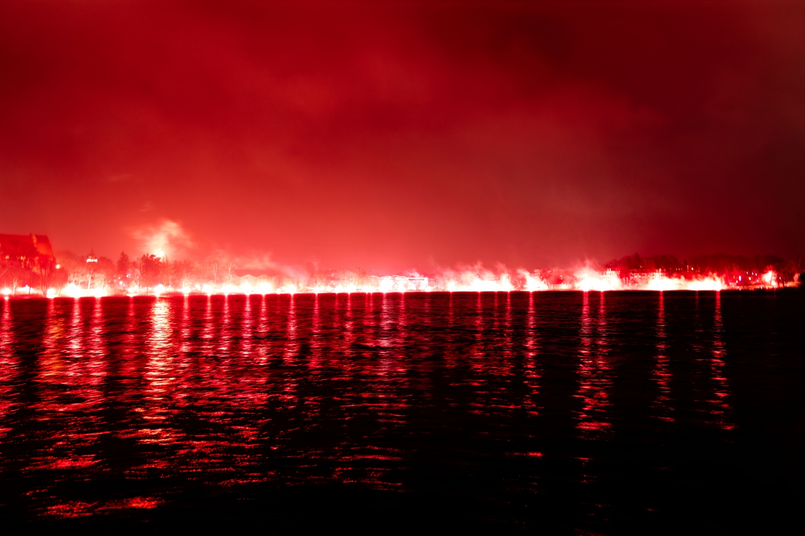 Sobota 6 grudnia 2025, godzina 19:45, centrum Iławy. Cały północny brzeg Małego Jezioraka zapłonął w jednym momencie światłem 80 rac! Następnie nastąpił pokaz pirotechniczny. Wszystko to z okazji 80. urodzin klubu sportowego z ul. Sienkiewicza. Jakby symboliki było mało, to na naszym nagraniu tych „ognistych” urodzin załapał się jeszcze przejeżdżający pociąg. A to przecież kolejarze założyli Jeziorak w Mikołajki 1945 roku. I kibice IKS, którzy zorganizowali wczorajszy pokaz, doskonale o tym pamiętają.