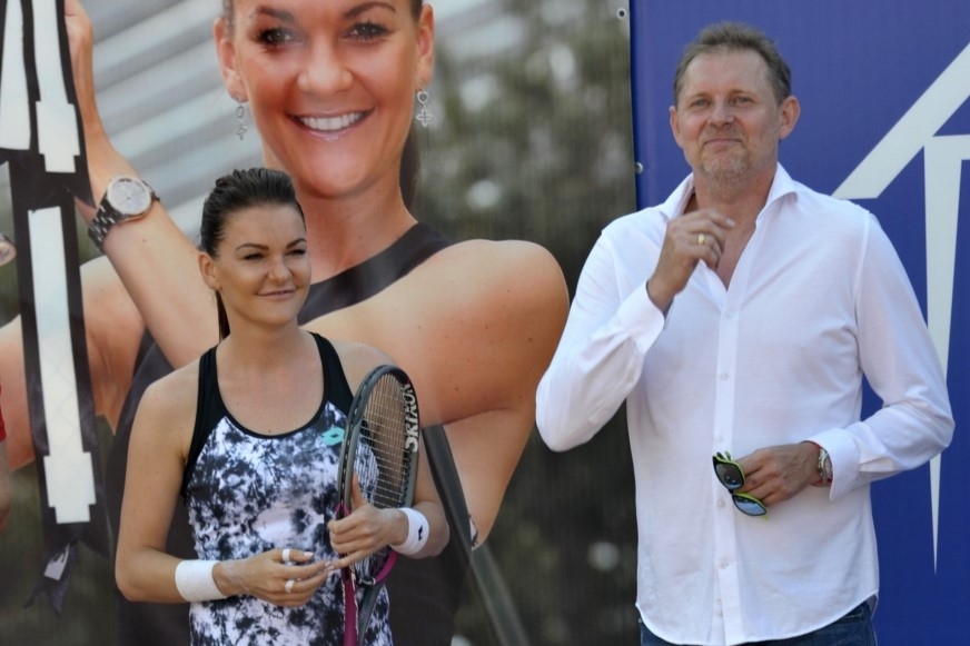 Agnieszka Radwańska i Jarosław Kotewicz podczas turnieju tenisowego Kotewicz Cup, organizowanego przez byłego skoczka wzwyż z Iławy