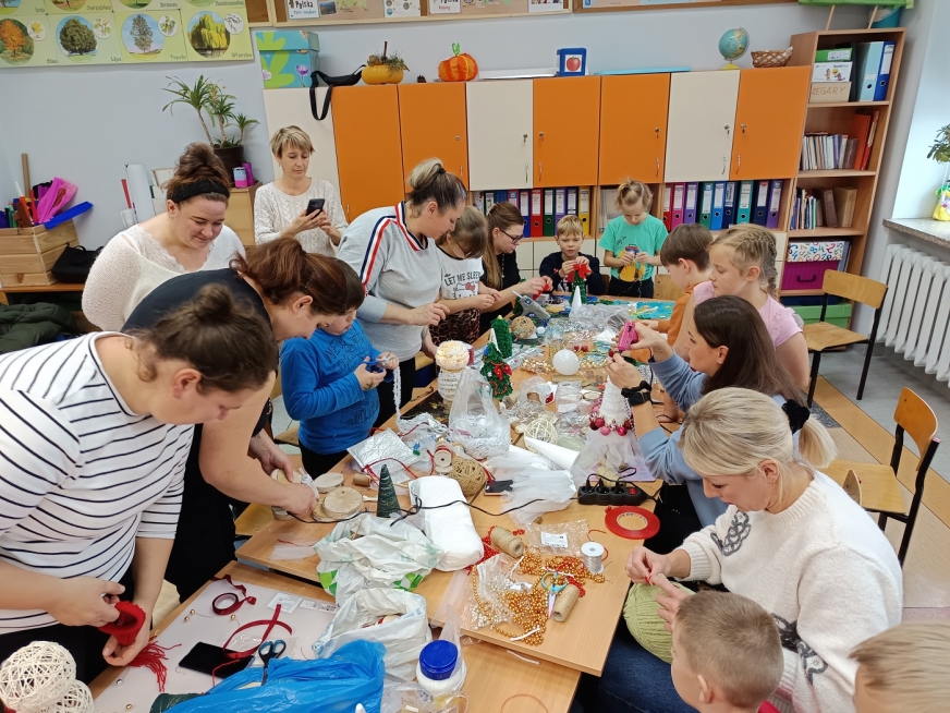 W Szkole Podstawowej im. Twórców Literatury Dziecięcej w Ząbrowie końcówka listopada upłynęła pod znakiem świątecznych przygotowań. W klasie 2 zorganizowano zajęcia otwarte dla rodziców – spotkanie, które zamieniło szkolną salę w niewielką, pełną energii pracownię rękodzieła.