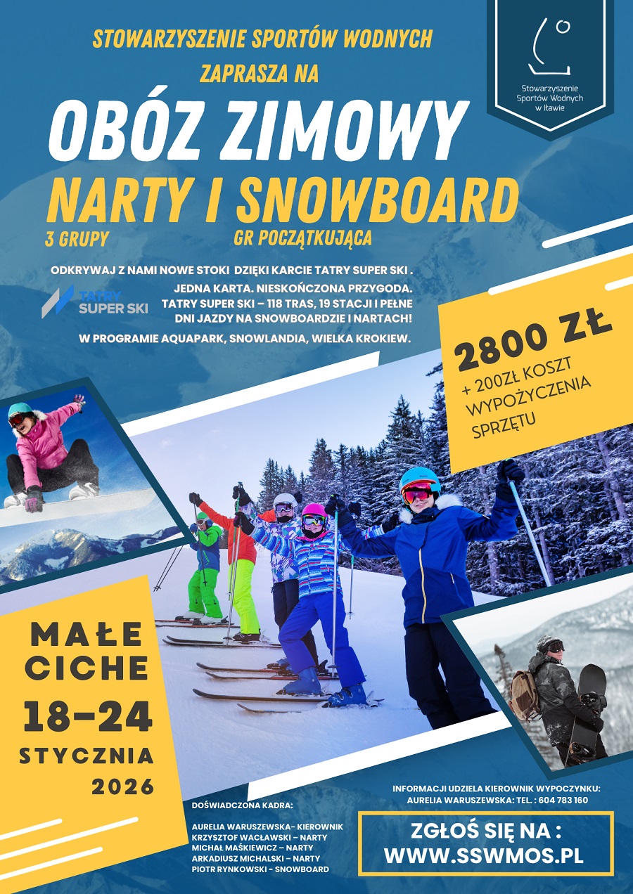 Stowarzyszenie Sportów Wodnych w Iławie przygotowało propozycję dla młodych miłośników zimowych aktywności. W dniach 18–24 stycznia 2026 roku odbędzie się obóz zimowy w Małem Cichem – miejscu idealnym dla tych, którzy chcą rozpocząć przygodę z nartami lub snowboardem, a także dla osób już jeżdżących, które chcą doskonalić swoje umiejętności.